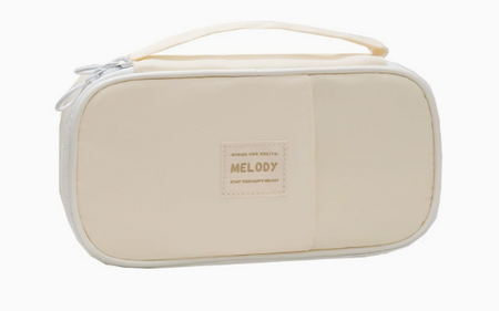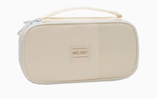 PIÓRNIK WIELOFUNKCYJNY SASZETKA KOSMETYCZKA TRZYKOMOROWA SZKOLNY KREMOWY