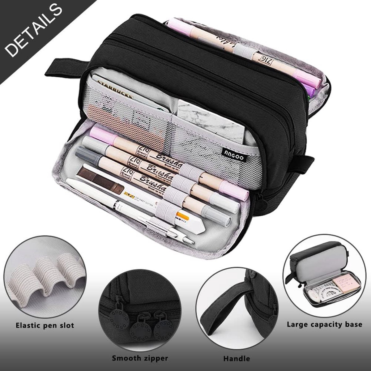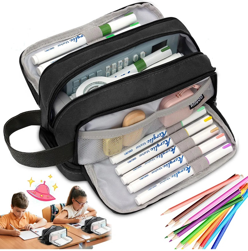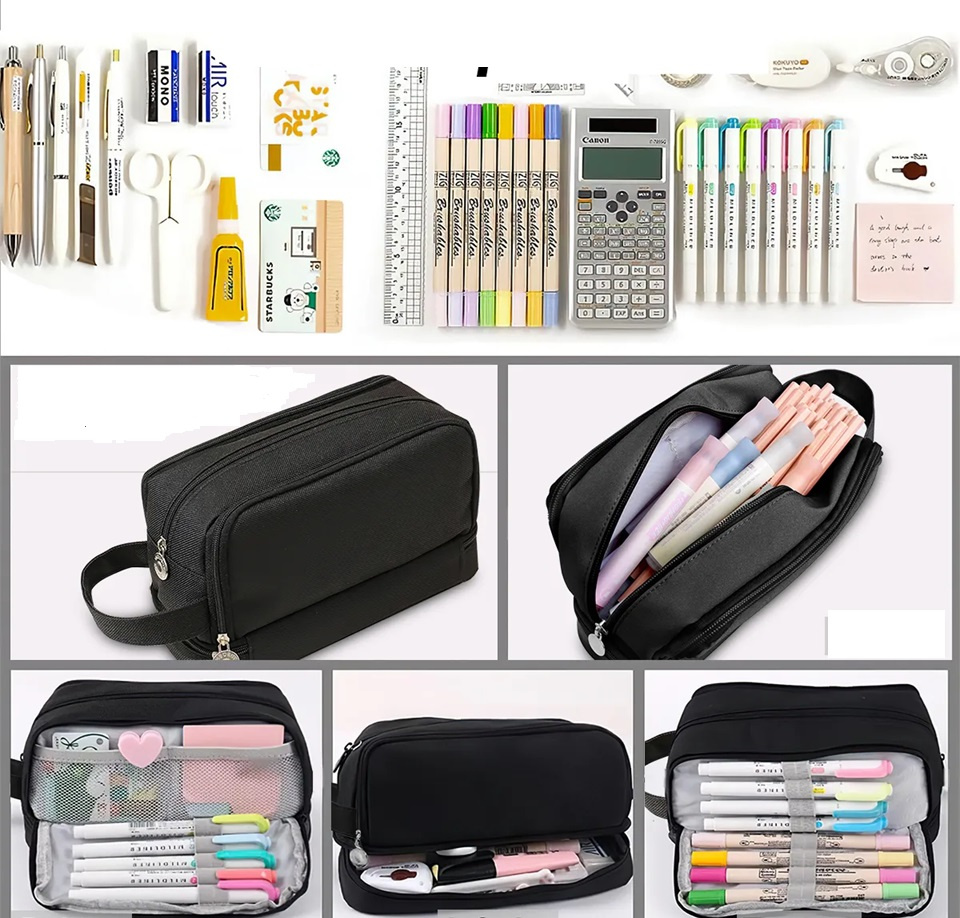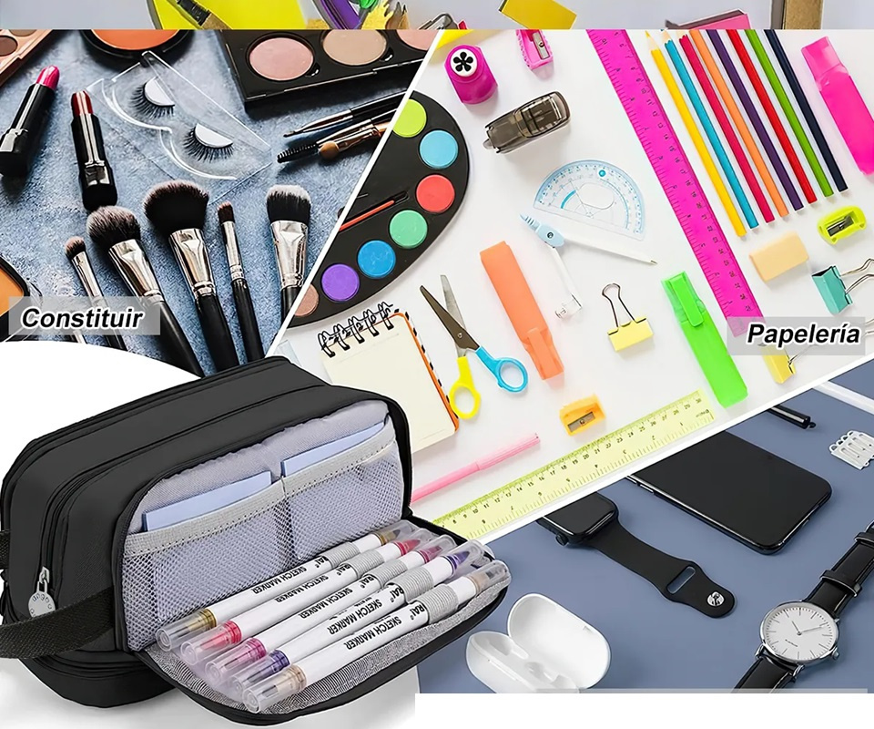 - Wielofunkcyjny: jest to nie tylko piórnik ale może być również organizerem, kosmetyczką, torbą na akcesoria podróżne, torbą do przechowywania materiałów piśmiennych, uchwyt na pędzle do makijażu, portmonetka, do użytku biurowego itp