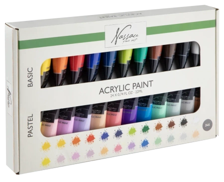 FARBY AKRYLOWE PASTELOWE DUŻY ZESTAW FARB AKRYLOWYCH 24 szt 22ml W TUBKACH