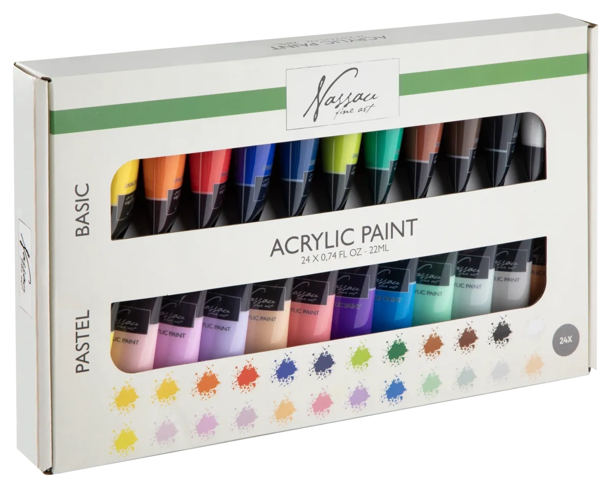 Namaluj, co tylko zechcesz, przy użyciu obszernego zestawu farb akrylowych w 24 kolorach. Możesz łatwo zabrać ze sobą małe tubki, by znaleźć w innym miejscu inspirację do stworzenia obrazu lub innego dzieła.