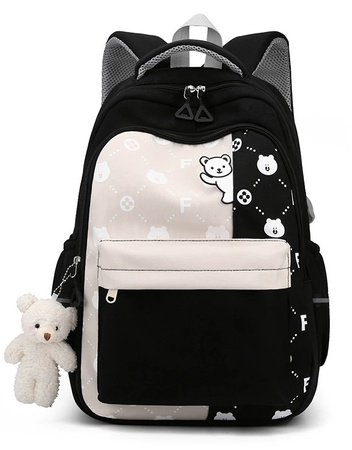 CZARNY PLECAK TORNISTER SZKOLNY DO SZKOŁY DLA DZIECI BRELOK MIŚ A4