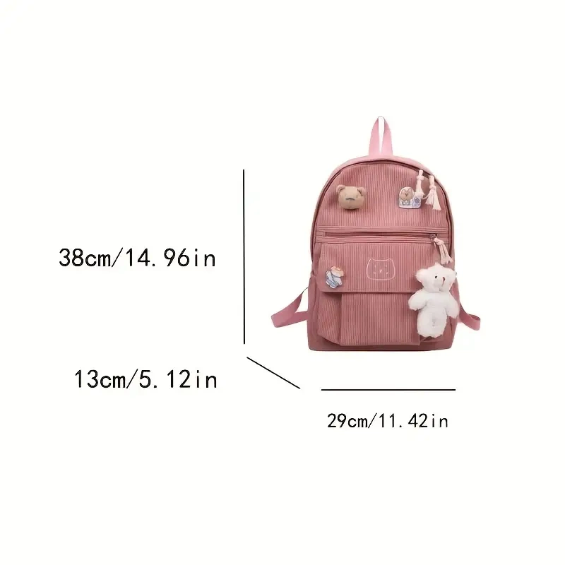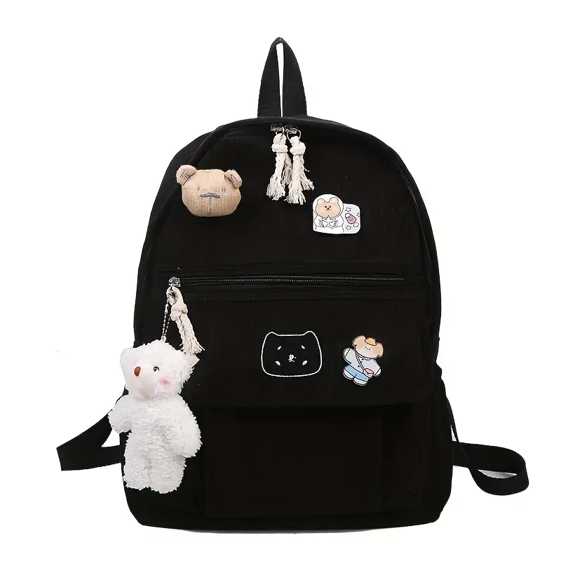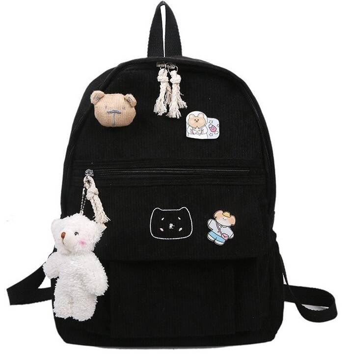 - Do plecaka dołączona maskotka/brelok w postaci białego misia widoczna na zdjęciach,miś brązowy oraz 2 przypinki(moga roznis sie wzorem od zdjecia)