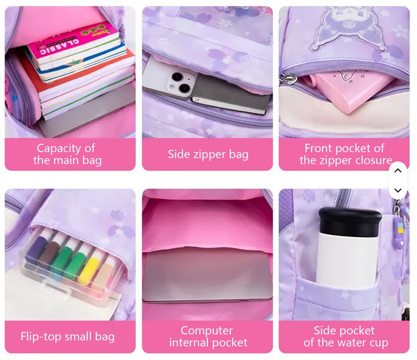 PLECAK SZKOLNY KUROMI TORNISTER PRZYPINKI Klasy 1-3 BRELOK 3-9
