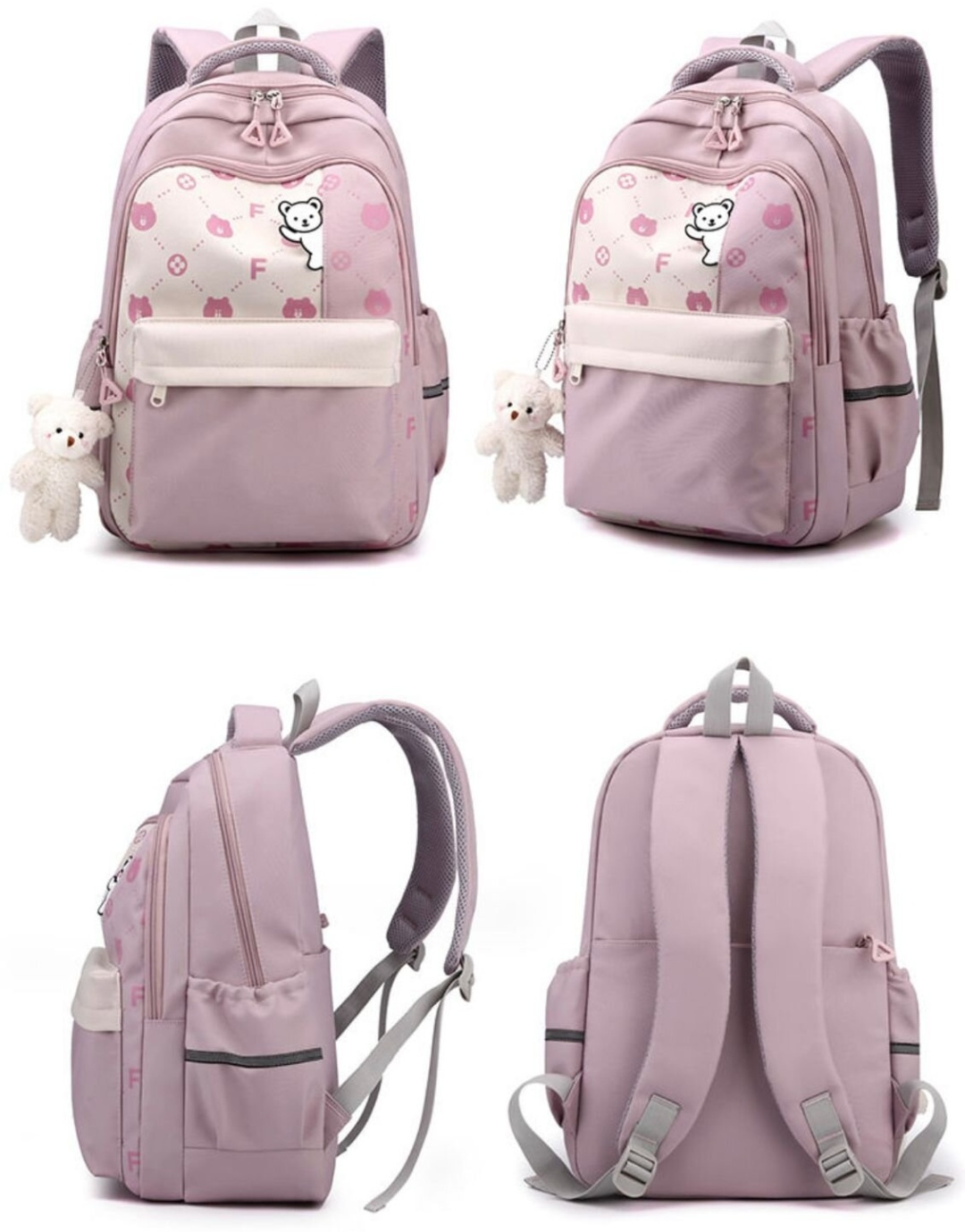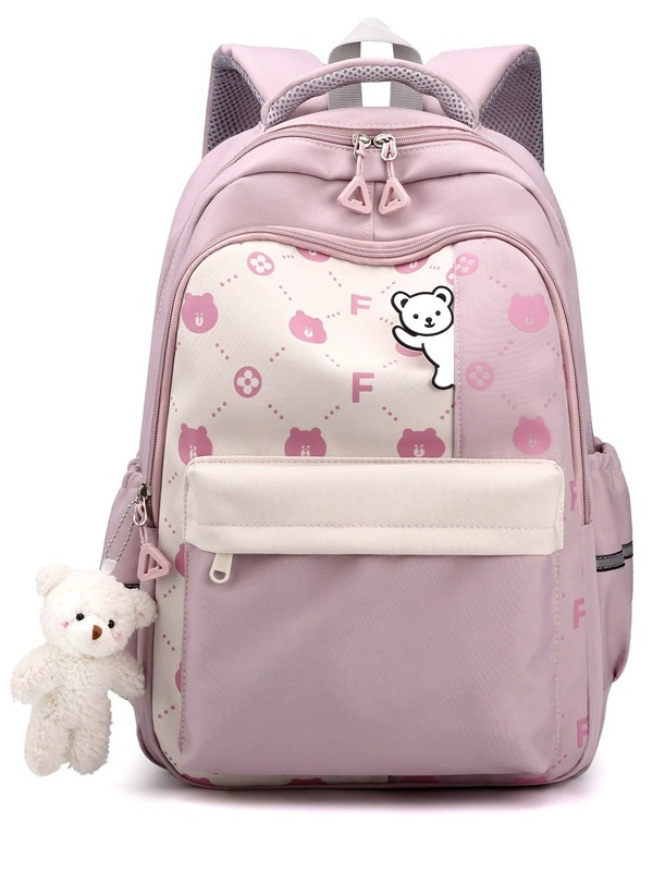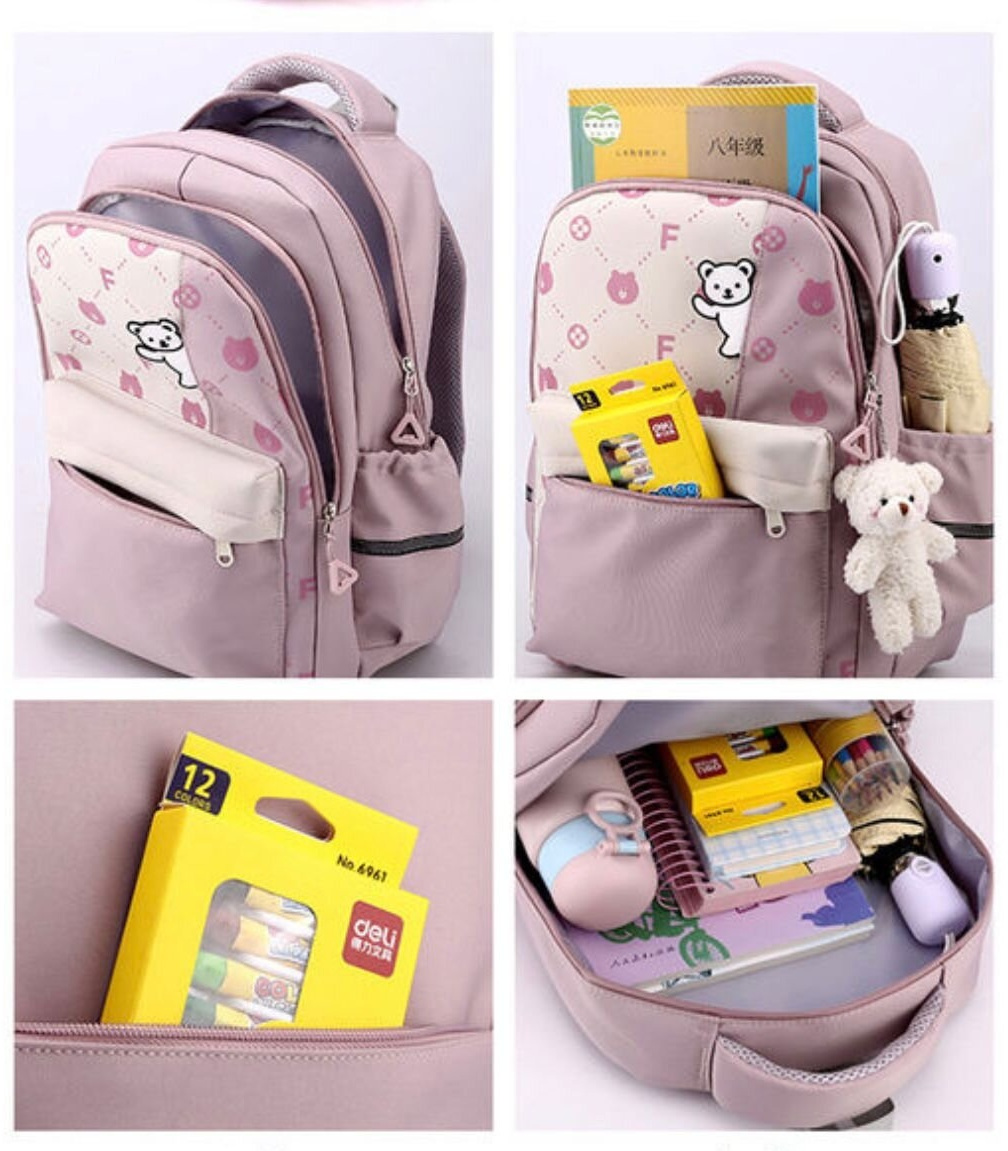 RÓŻOWY PLECAK TORNISTER SZKOLNY DO SZKOŁY DLA DZIECI BRELOK MIŚ