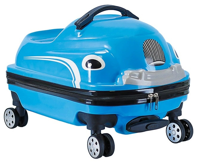 - Funkcja jeździka – specjalny kształt umożliwia dziecku siadanie i jazdę, co sprawia, że oczekiwanie na lotnisku czy dworcu staje się świetną zabawą.