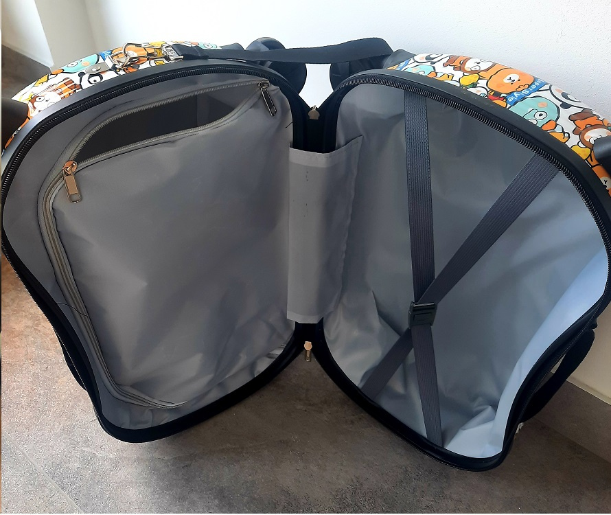 • 2w1: walizka i jeździk – specjalna konstrukcja umożliwia siedzenie i jazdę.