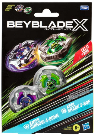 BEYBLADE X - DUAL PACK - KNIFE SHINOBI 4-80HN (DEFENSE) +KEEL SHARK 3-80F