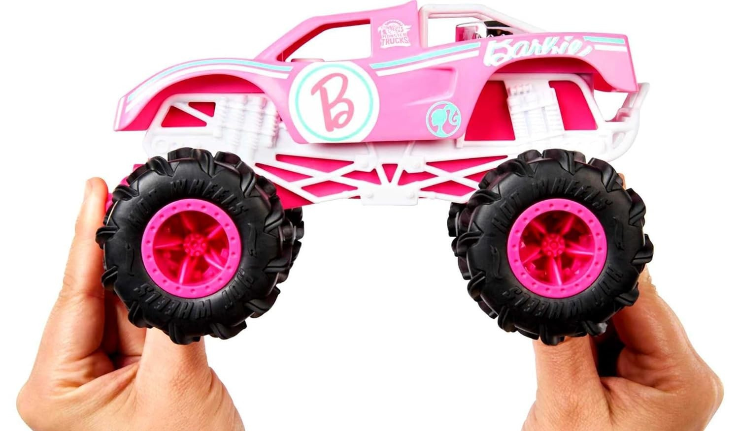 Hot Wheels® Monster Trucks zapewniają jeszcze więcej zabawy w stylu Barbie® dzięki zdalnie sterowanemu pojazdowi Hot Wheels® Monster Truck R/C Barbie® w skali 1:24! Steruj Monster Truckiem Barbie® i pokonuj przeszkody dzięki oponom Terrain Action™. Ustaw go na tylnych kołach i jedź, aby dać popis umiejętności kaskaderskich. Kolory i elementy dekoracyjne mogą się różnić.