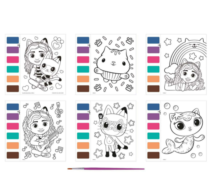 6 kolorowanek z paskami malarskimi, które ożywią postacie Gabby i jej przyjaciół