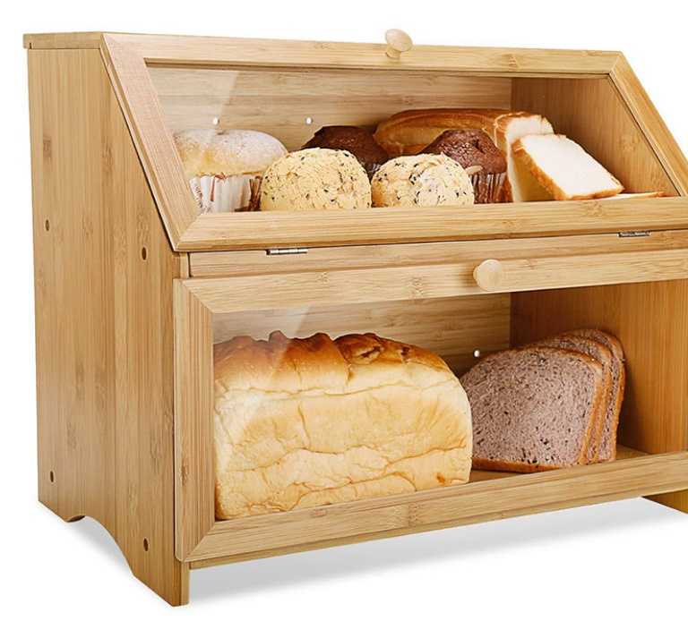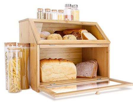 - ✔️ Dwupoziomowa budowa pozwala na przechowywanie większej ilości pieczywa