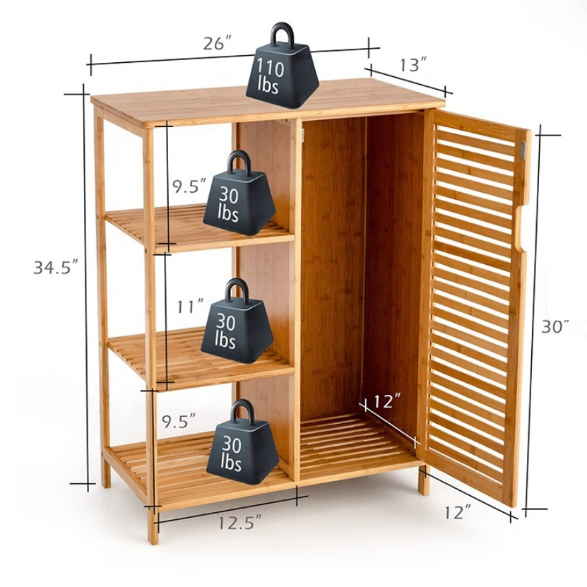 Wykonana z wysokiej jakości bambusa, ta ekologiczna i trwała szafka łazienkowa łączy nowoczesny design z praktycznymi rozwiązaniami. Naturalny materiał jest odporny na wilgoć, wodę i mole, a gładka powierzchnia pokryta bezbarwnym lakierem jest łatwa w czyszczeniu i bezpieczna w użytkowaniu.