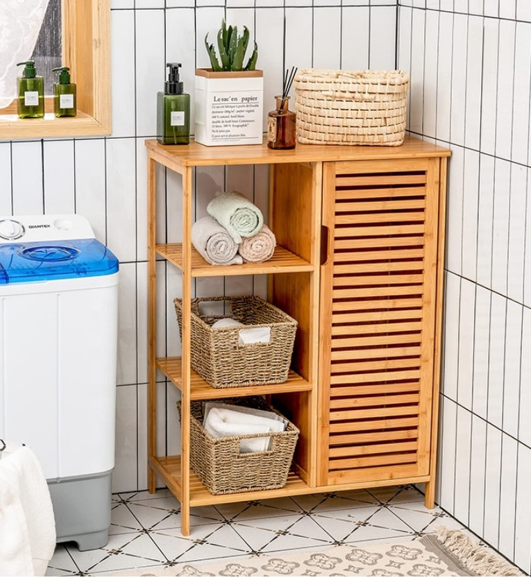 Bambusowa szafka łazienkowa 2 w 1 – elegancja i funkcjonalność w naturalnym stylu