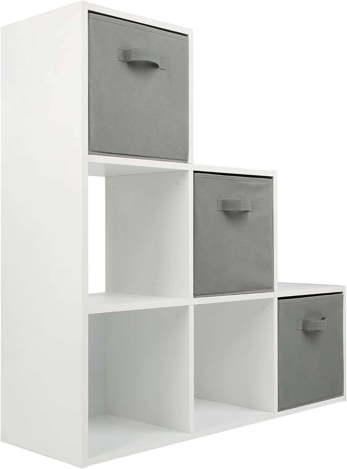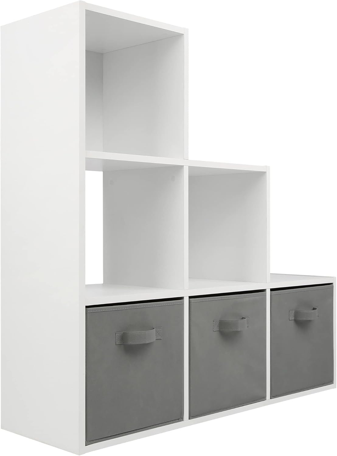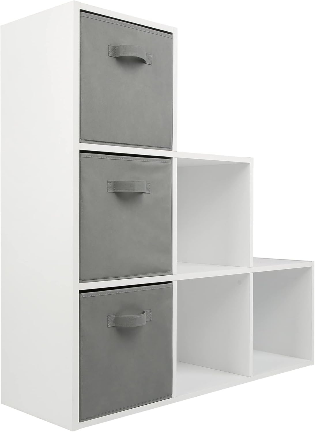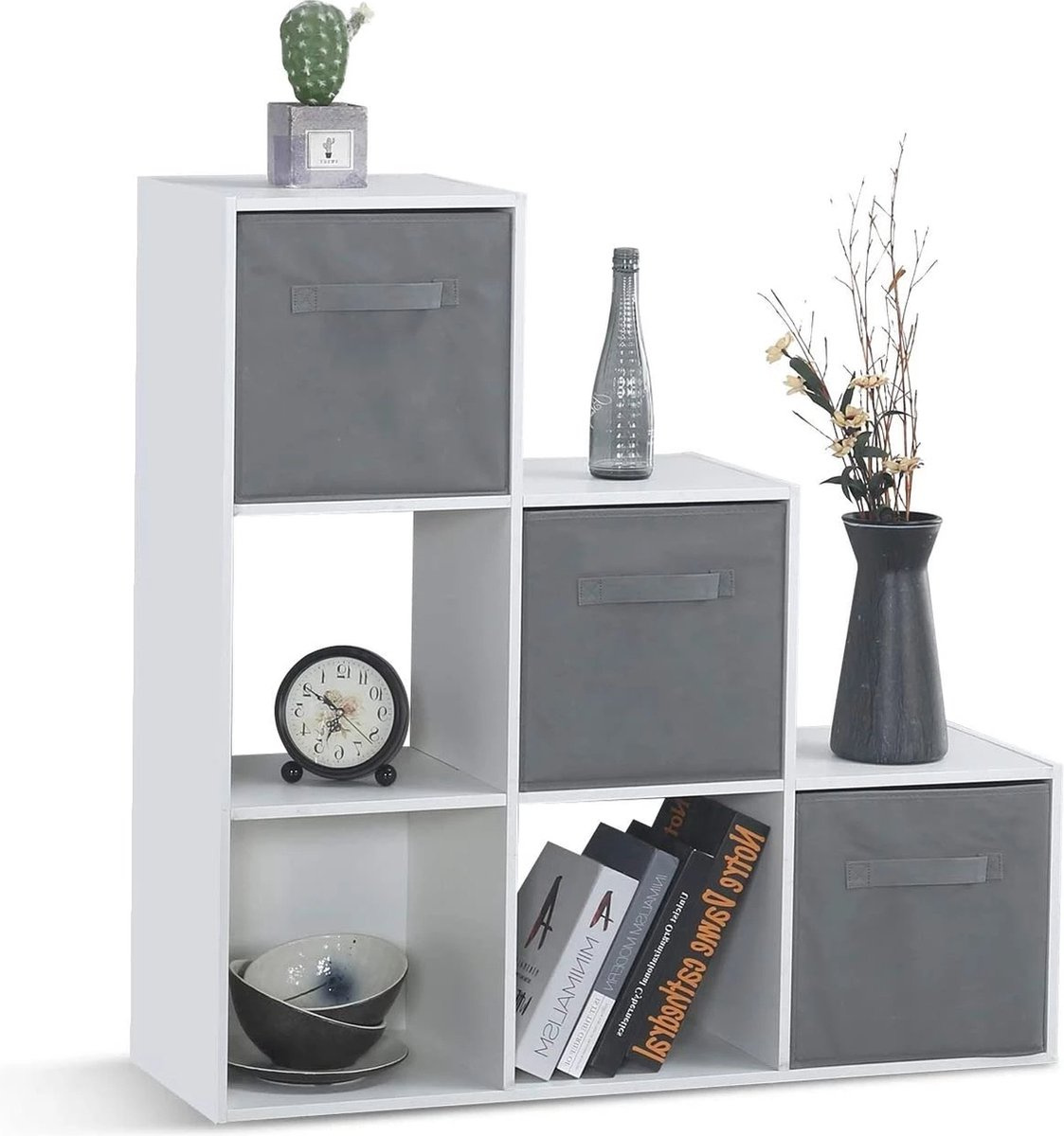Posiada 6 półek, w tym 3 z szarymi tekstylnymi pojemnikami, idealnymi na zabawki, klocki, przybory plastyczne czy drobne akcesoria. Pozostałe półki doskonale sprawdzą się na książki, puzzle czy dekoracje, pozwalając utrzymać porządek w pokoju.