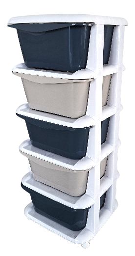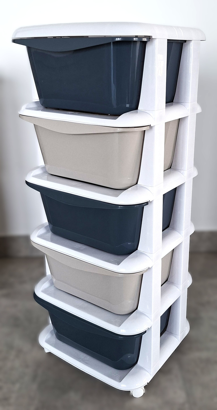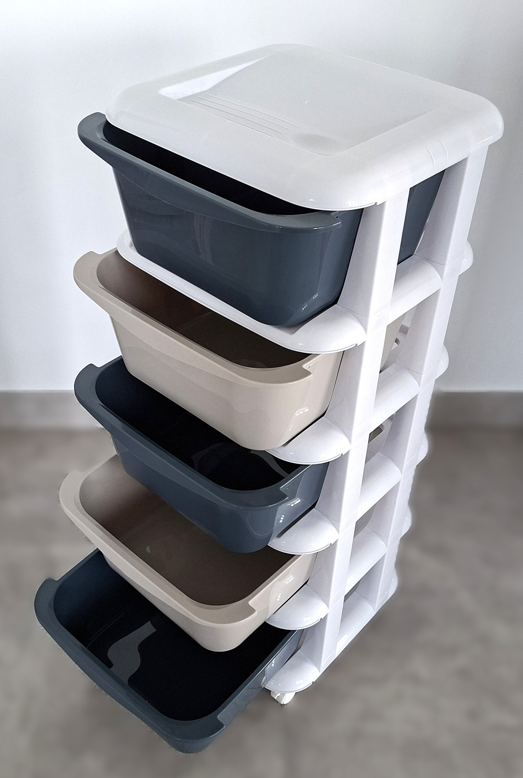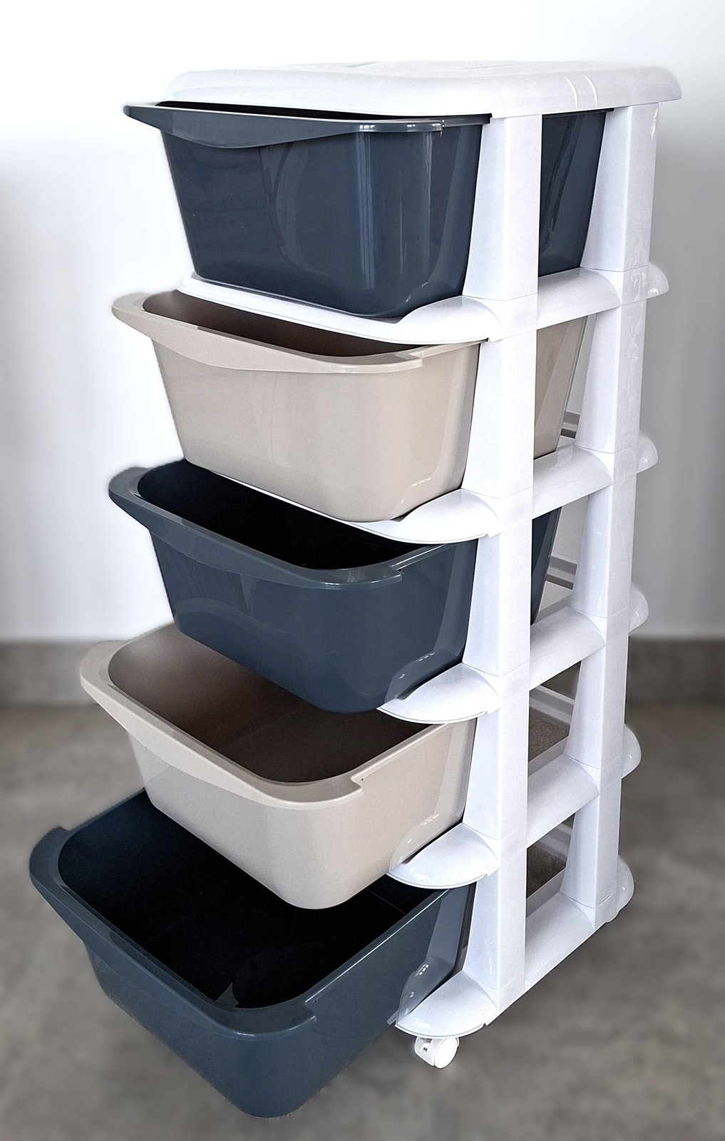 PLASTIKOWY POJEMNIK REGAŁ KOSZ NA ZABAWKI SZAFKA SZUFLADY 5 PÓŁEK