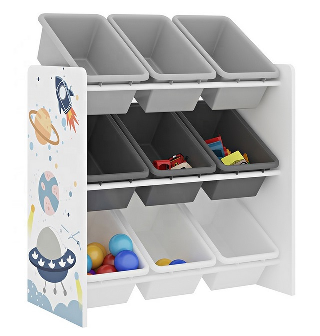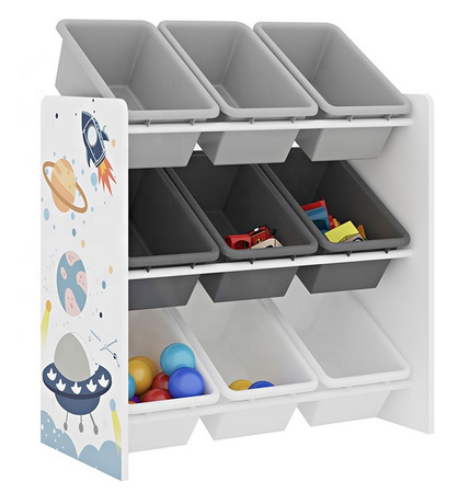 REGAŁ SIWY BIAŁY KOSMOS POJEMNIKI PLASTIKOWE ORGANIZER NA ZABAWKI DZIECI