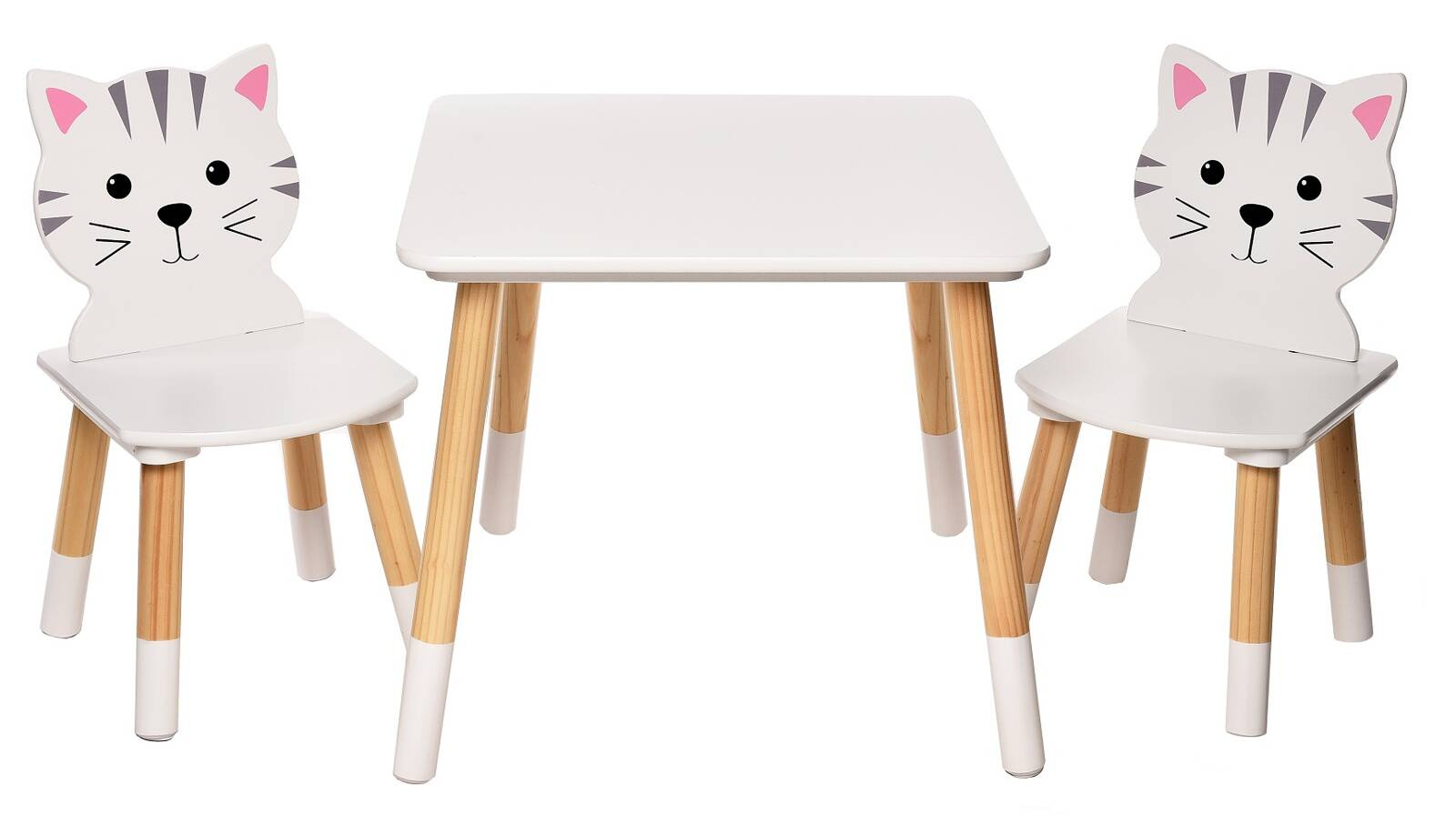 BIAŁY SIWY STÓŁ STOLIK KOTEK KOT 2 KRZESŁA DZIECI