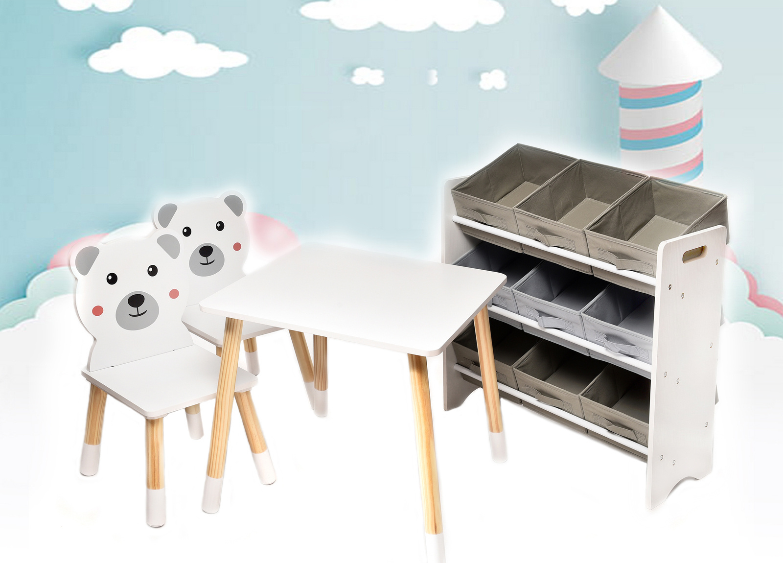 - Zestaw idealnie komponuje się w każdym dziecięcym pokoiku, może też idealnie posłużyć jako stoliczek do rysowania w dziecięcej strefie np: w biurze, gabinecie.