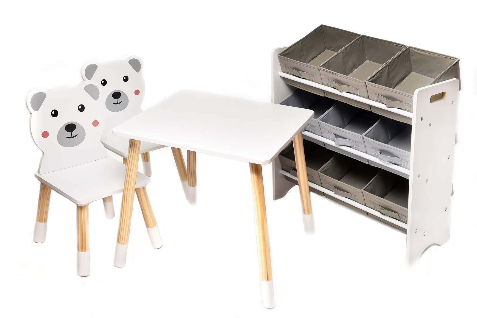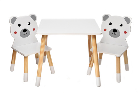 BIAŁY STOLIK STÓŁ MIŚ MISIE DLA DZIECI 2 KRZESŁA