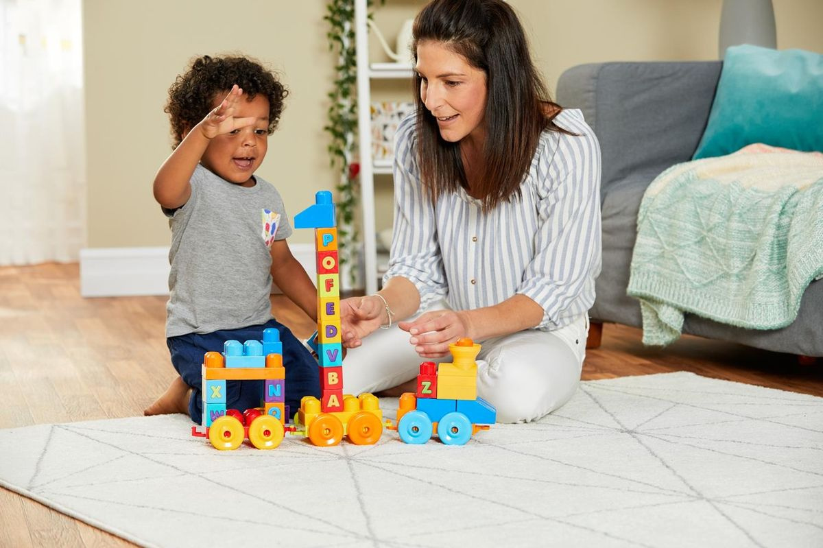 MEGA BLOKS MUZYCZNY POCIĄG Z DŹWIĘKIEM KLOCKI Z LITERKAMI DLA MALUSZKA