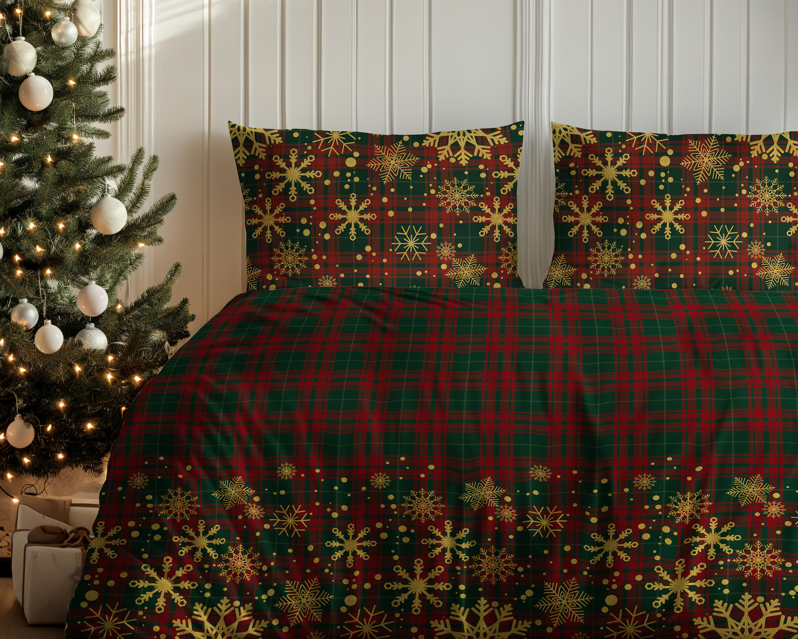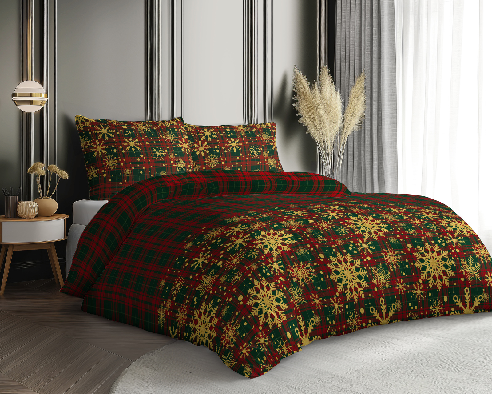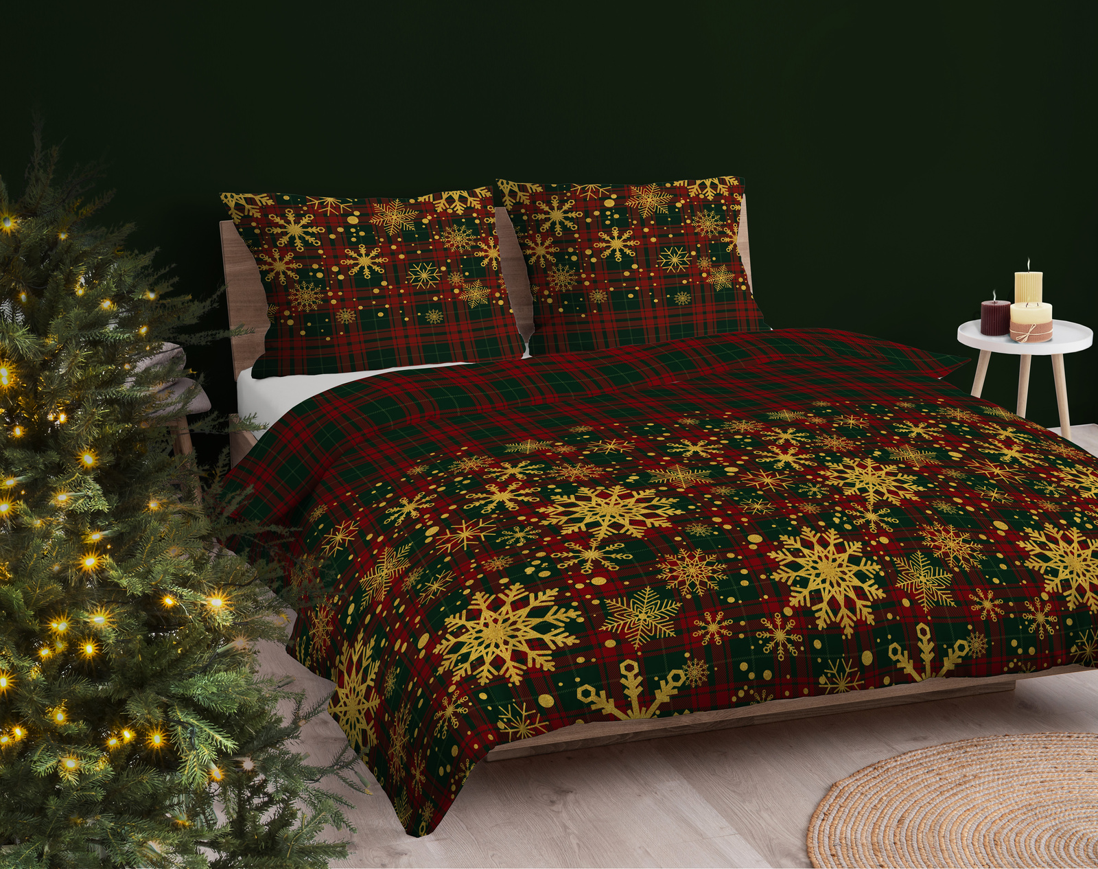 POŚCIEL ŚWIĘTA ŚWIĄTECZNA KRATKA BAWEŁNA SATYNOWA 220X200 GWIAZDKA