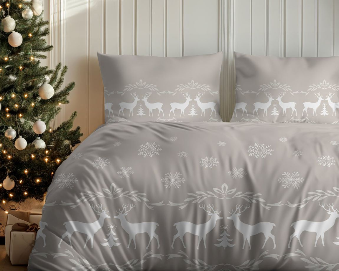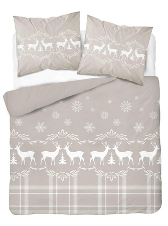 POŚCIEL ŚWIĘTA ŚWIĄTECZNA RENIFERY BAWEŁNA SATYNOWA 160X200 GWIAZDKA BEŻ
