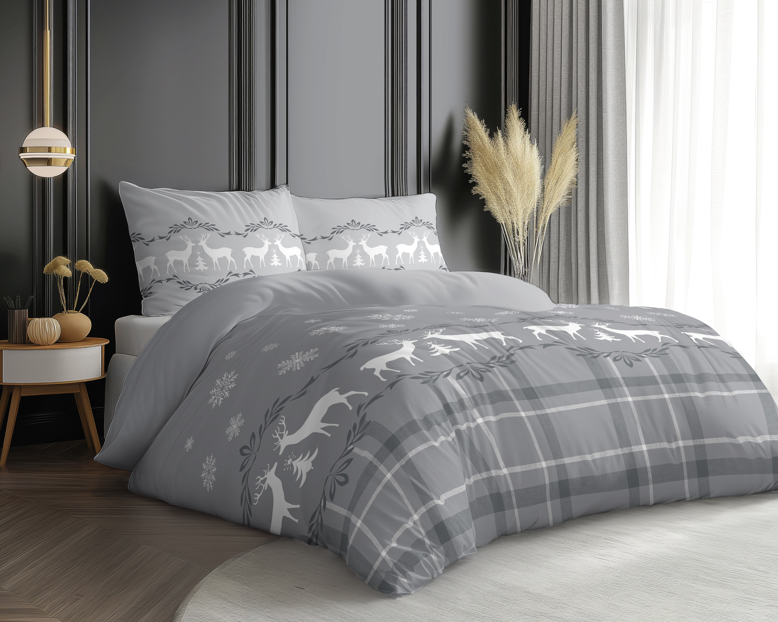 POŚCIEL ŚWIĘTA ŚWIĄTECZNA RENIFERY BAWEŁNA SATYNOWA 160X200 GWIAZDKA SIWA