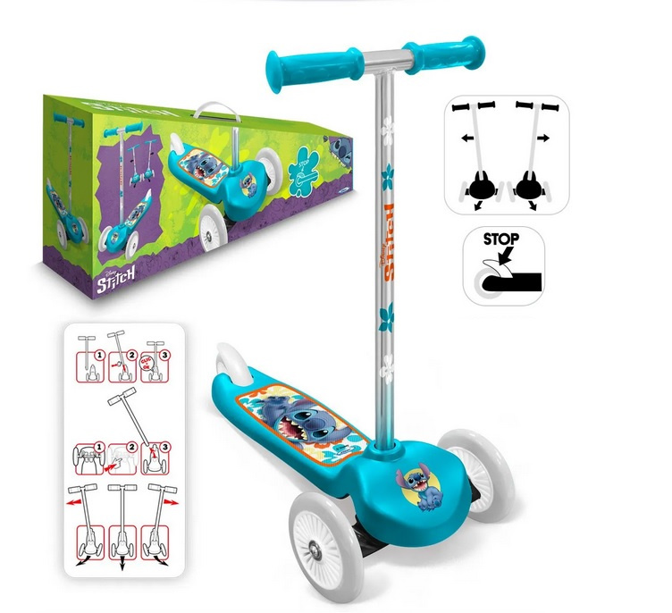 Hulajnoga trójkołowa na licencji Disney z bajki STITCH. Jest idealną pierwszą hulajnogą, która ułatwia naukę i gwarantuje wygodę podczas jazdy oraz wspiera rozwój psychoruchowy dziecka. Powstała z myślą o młodszych wielbicielach bajki.