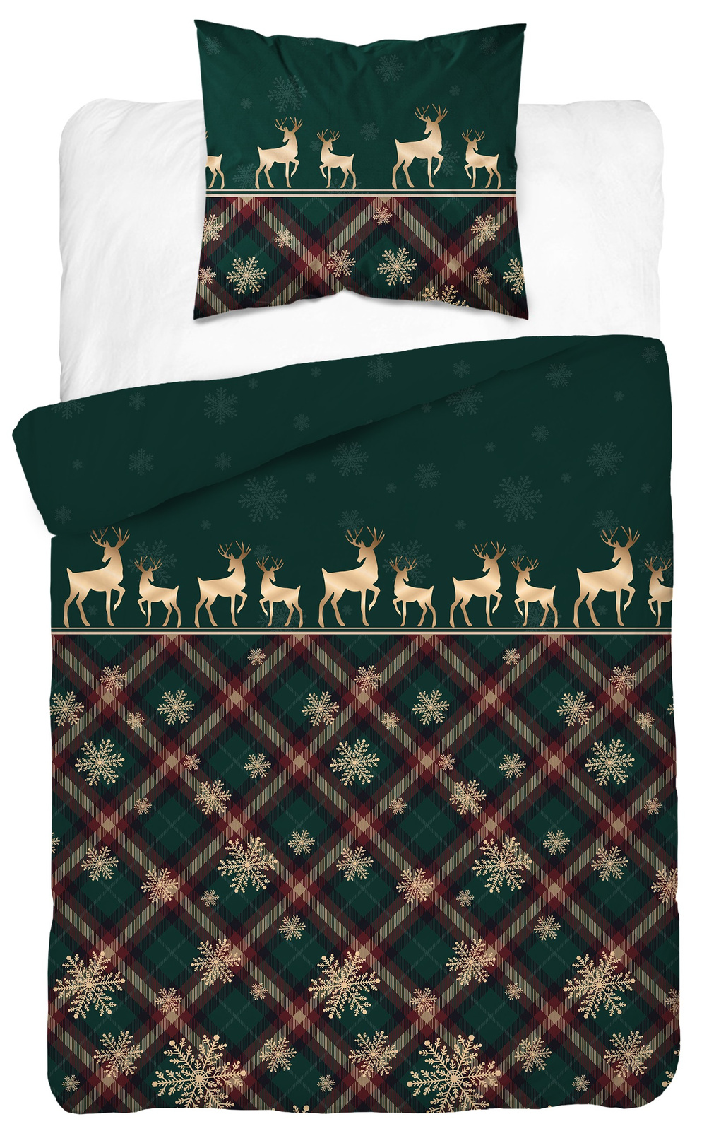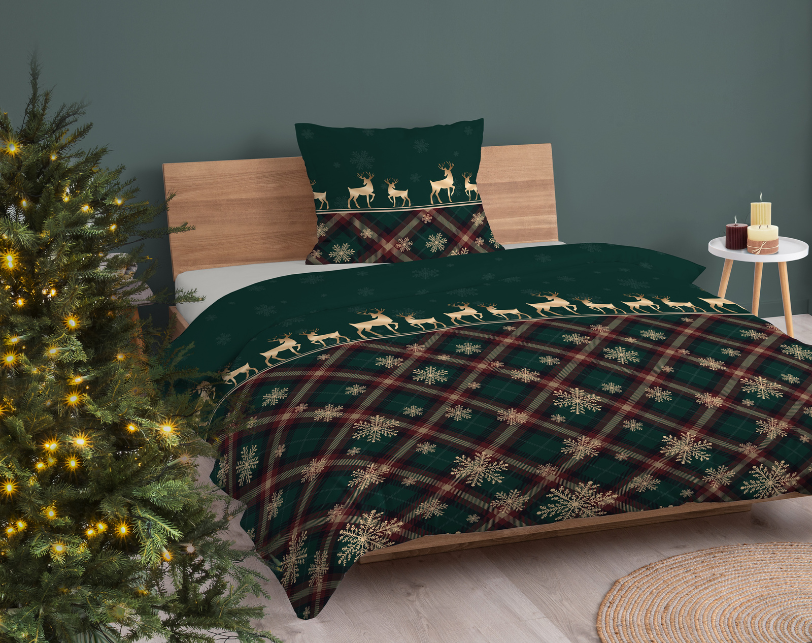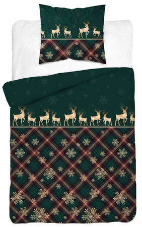 ŚWIĘTA ŚWIĄTECZNA POŚCIELZIELONA RENIFERY KRATKA ŚNIEŻYNKA BAWEŁNA 140X200