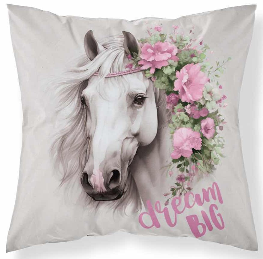 Poduszka Jasiek 40x40 „Koń w Kwiatach” to uroczy i stylowy dodatek do pokoju młodzieżowego lub dziecięcego. Miękka i przyjemna w dotyku, łączy komfort wypoczynku z pięknym motywem konia ozdobionego kwiatami, wprowadzając do wnętrza pogodny i artystyczny klimat. Doskonale sprawdzi się na łóżku, fotelu lub w kąciku do nauki i relaksu, a także jako pomysłowy prezent dla miłośników zwierząt i natury.