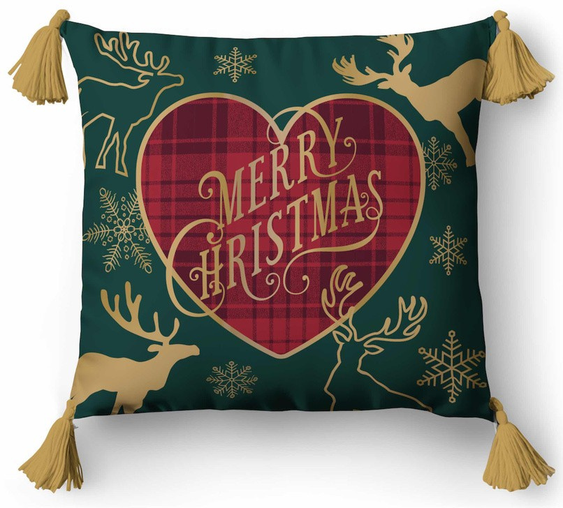 PODUSZKA JASIEK DEKORACYJNA ŚWIĄTECZNA 45x45 Z FRĘDZLAMI MERRY CHRISTMAS