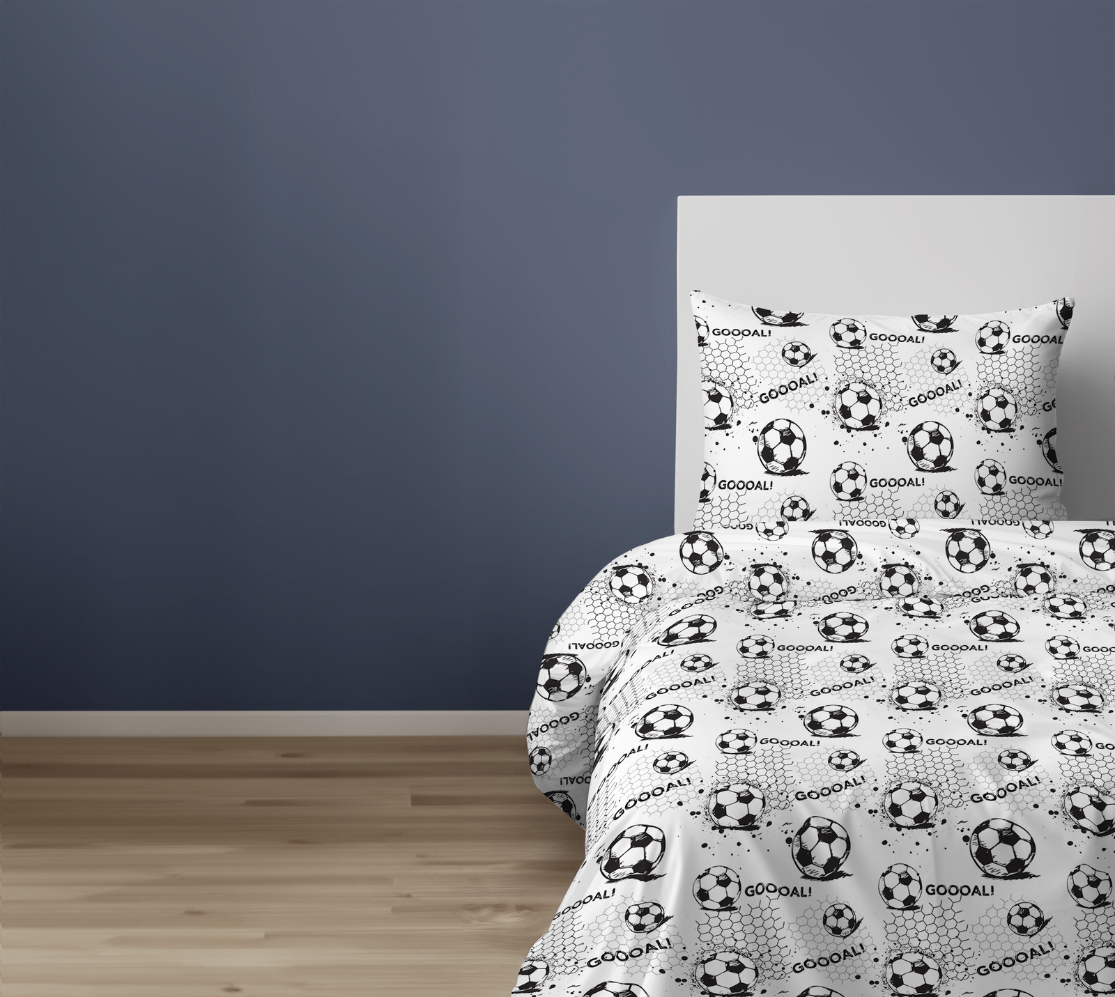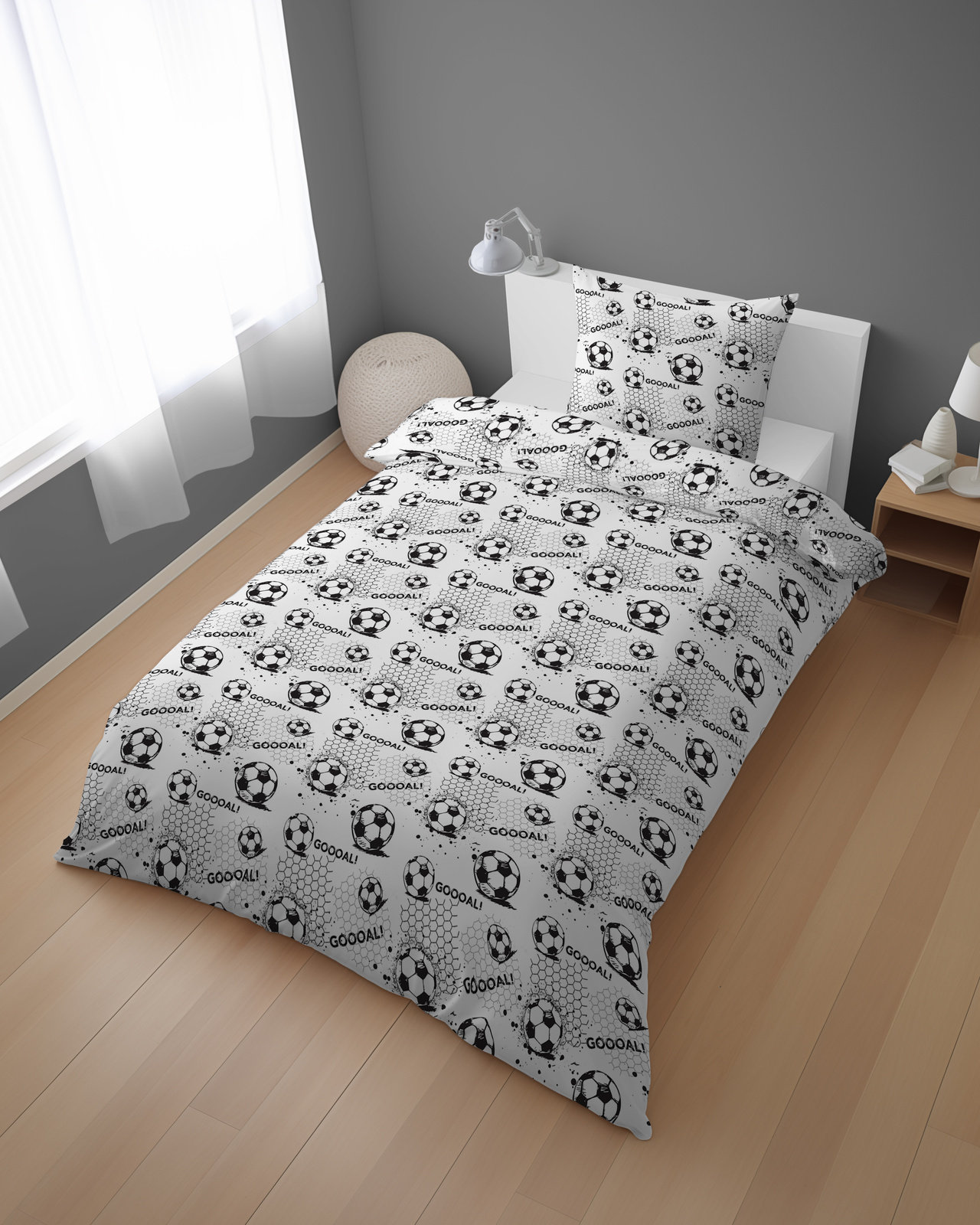 POŚCIEL DZIECIĘCA 140x200cm PIŁKA NOŻNA GOL FOOTBALL BIAŁA SZARA XOXO