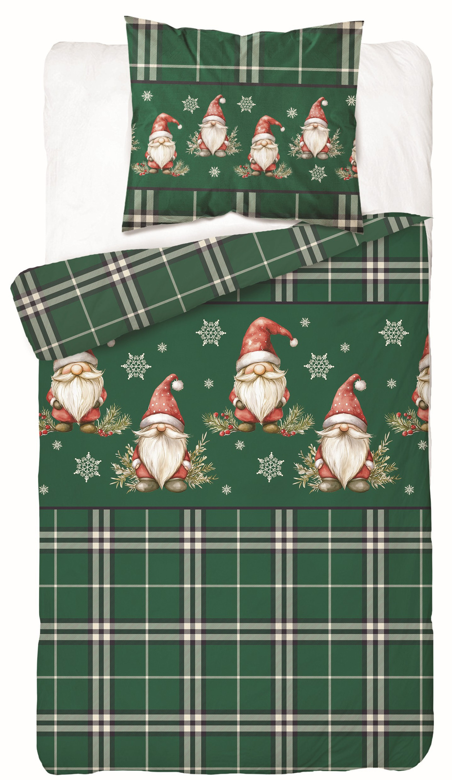POŚCIEL ŚWIĄTECZNA ŚWIĘTA ZIELONY KRASNAL KRATA BAWEŁNA FLANELA 140X200