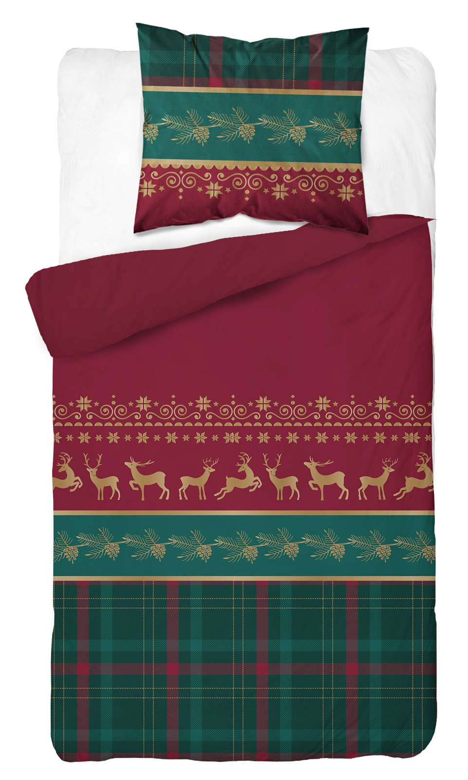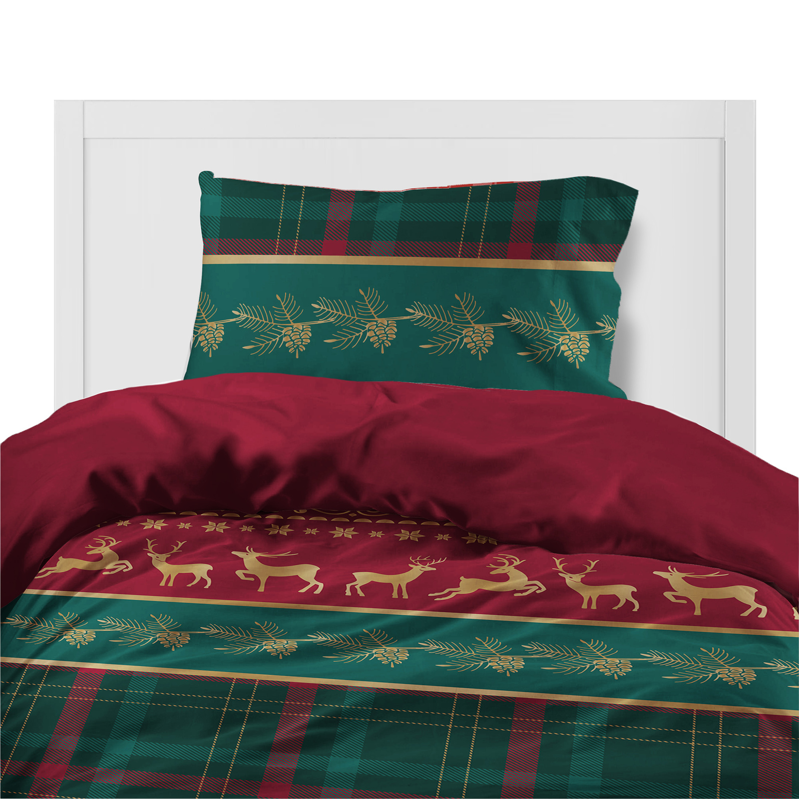 POŚCIEL ŚWIĘTA ŚWIĄTECZNA FLANELA RENIFERY KRATKA FLANELOWA ZIELONA 140X200