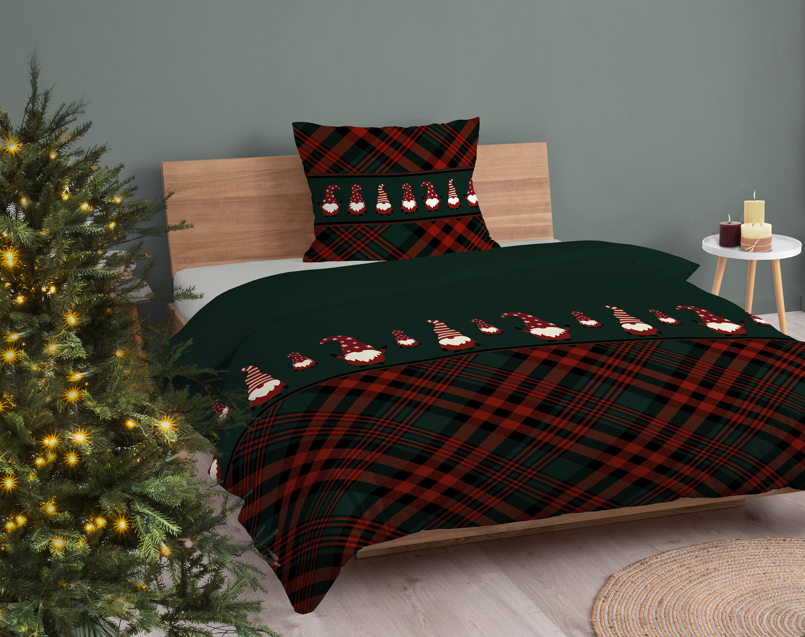 ŚWIĘTA ŚWIĄTECZNA POŚCIEL ELF ELFY ZIELONA KRATKA BAWEŁNA 140X200