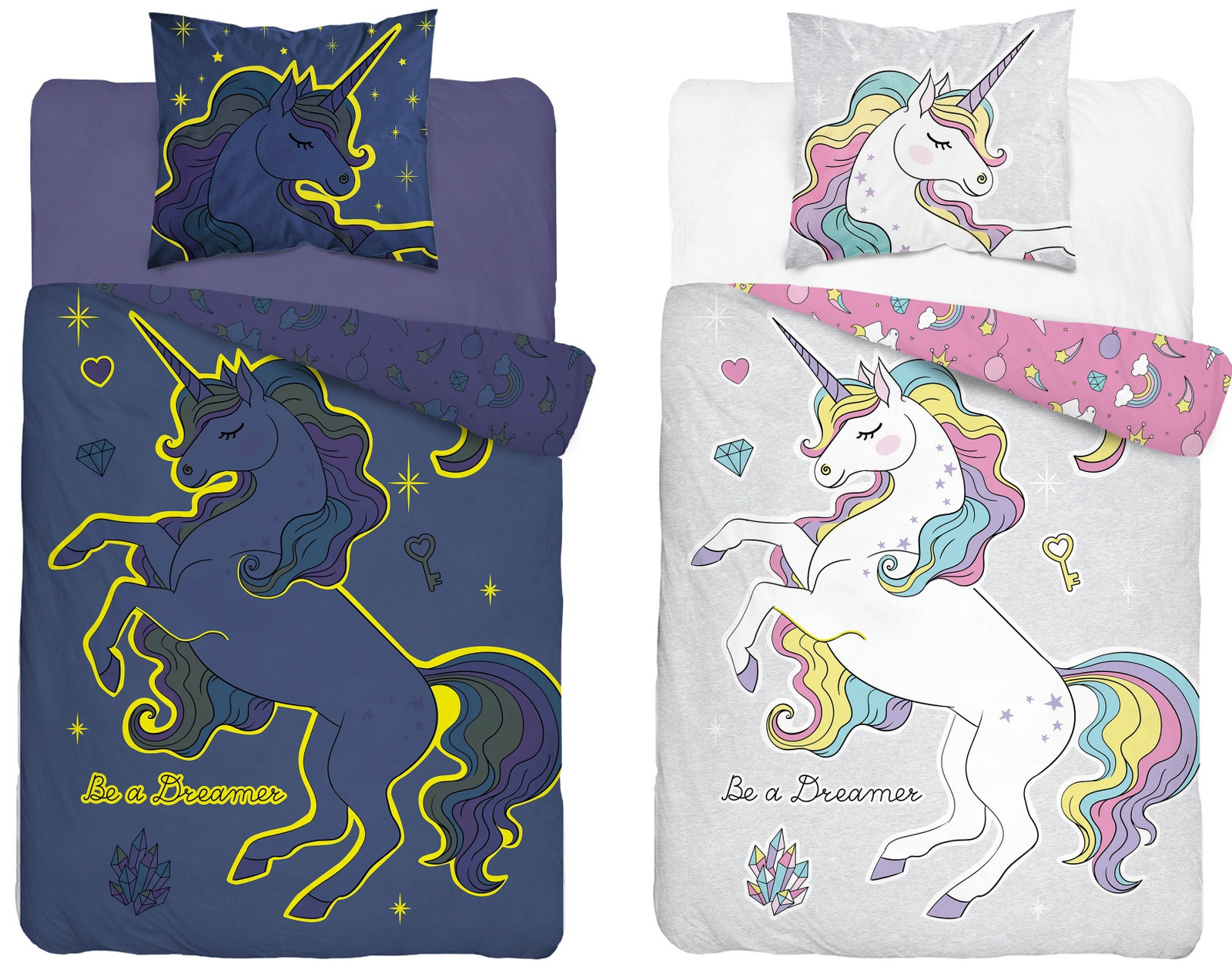 JEDNOROŻEC UNICORN KONIK POŚCIEL ŚWIECĄCA W CIEMNOŚCI ŚWIECI FLUO 160x200