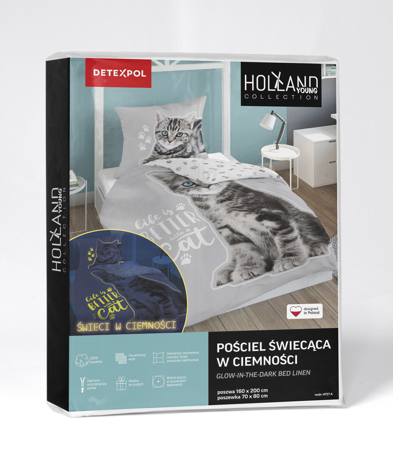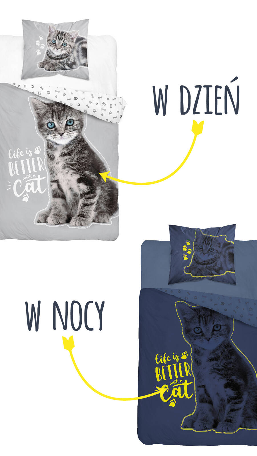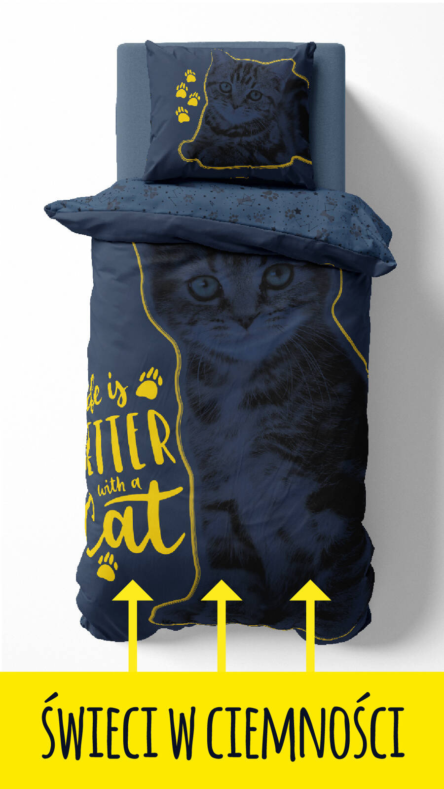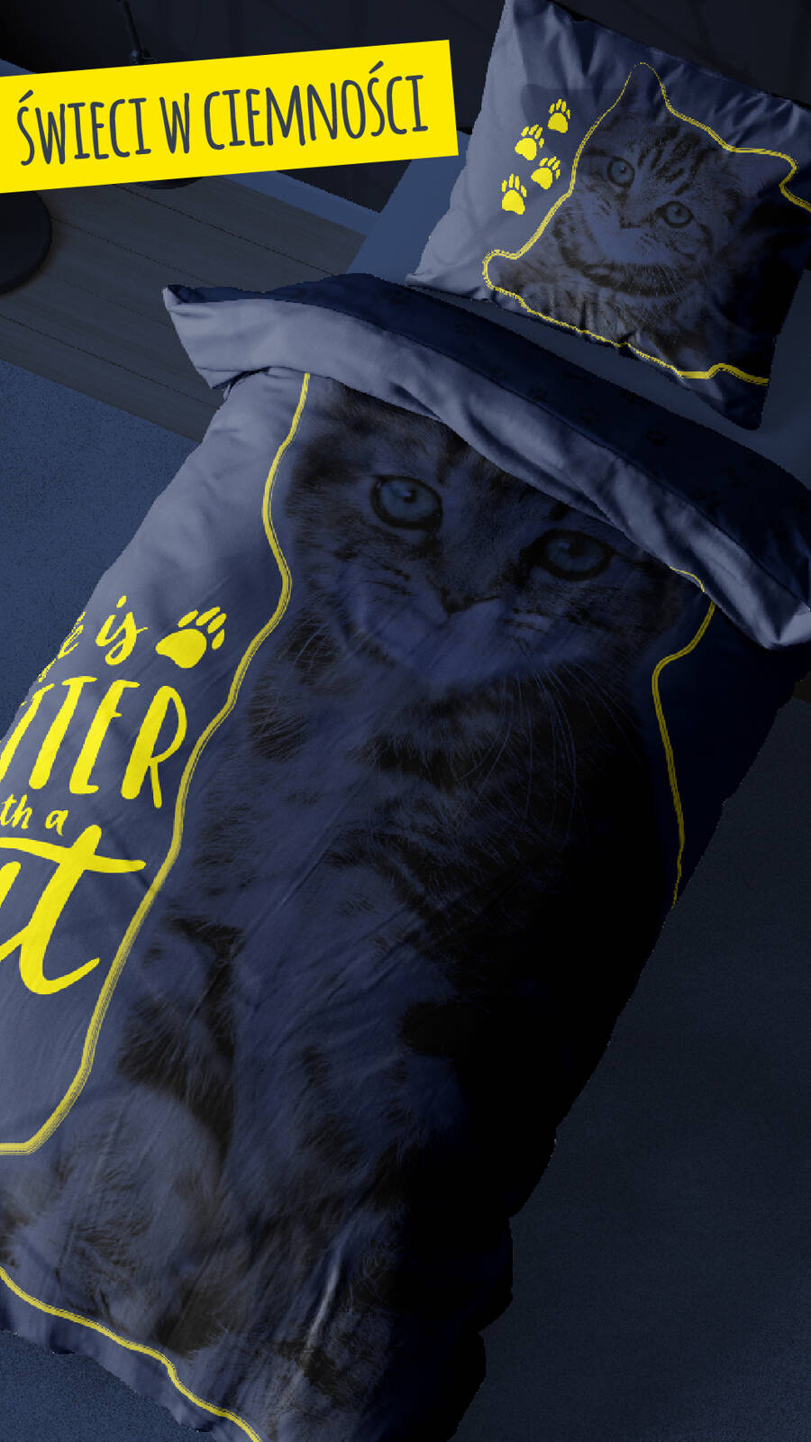 KOT KOTEK POŚCIEL ŚWIECĄCA W CIEMNOŚCI ŚWIECI DWUSTRONNA 160X200