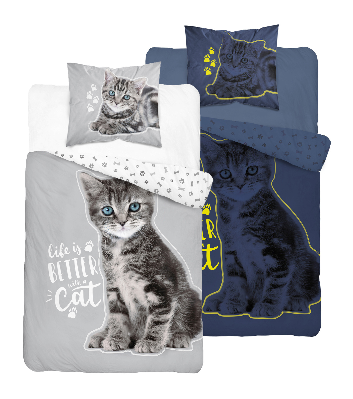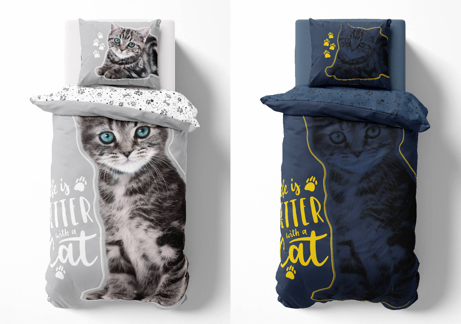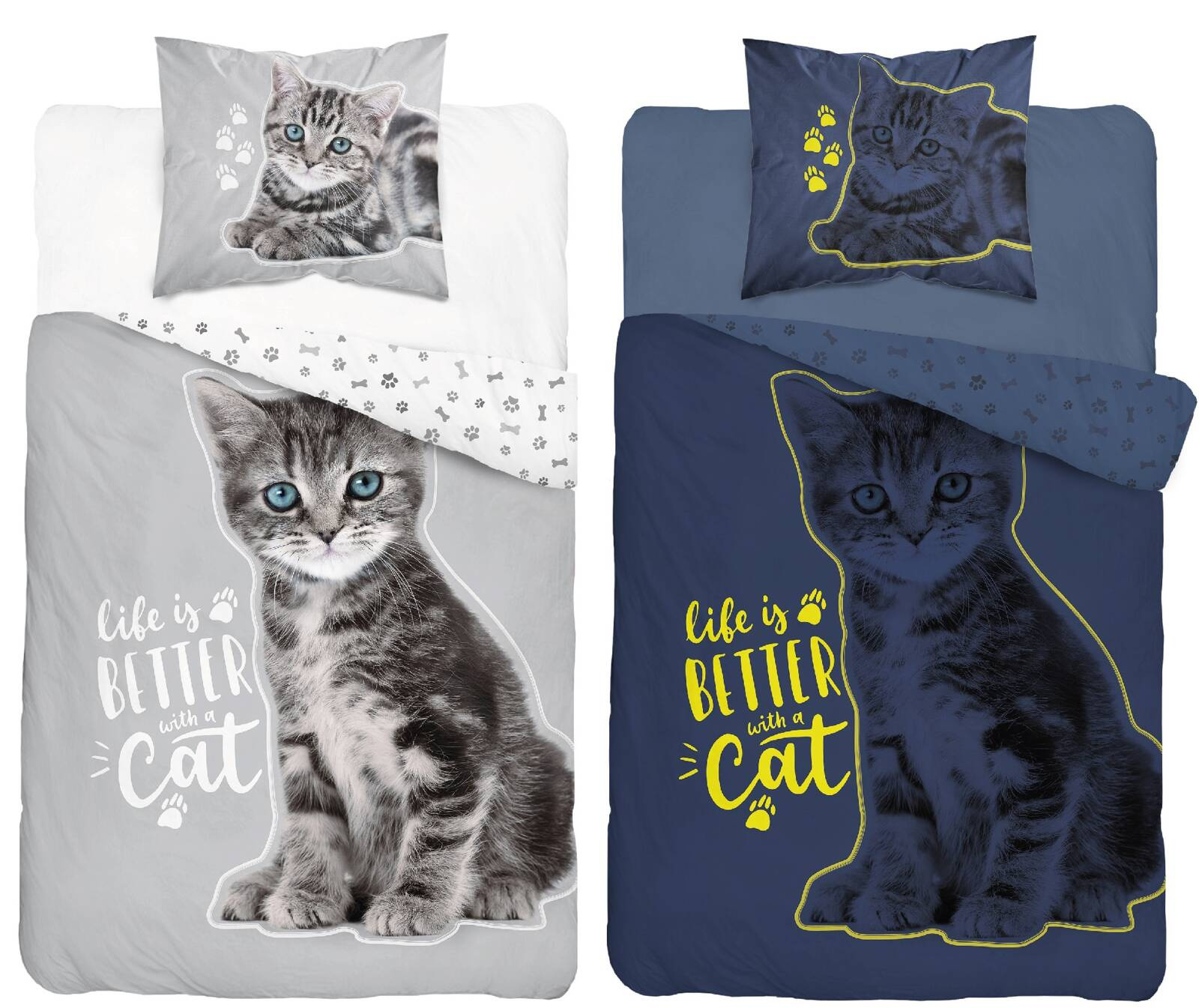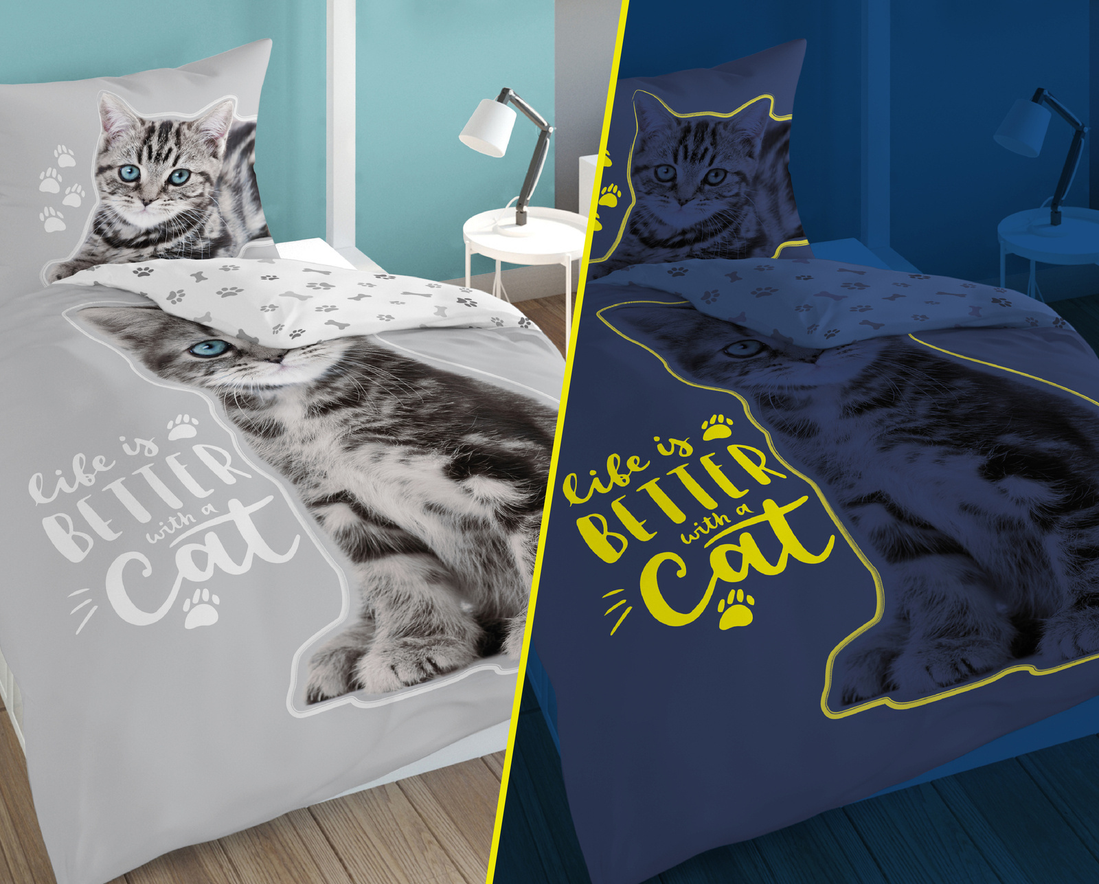 KOT KOTEK POŚCIEL ŚWIECĄCA W CIEMNOŚCI ŚWIECI DWUSTRONNA 160X200