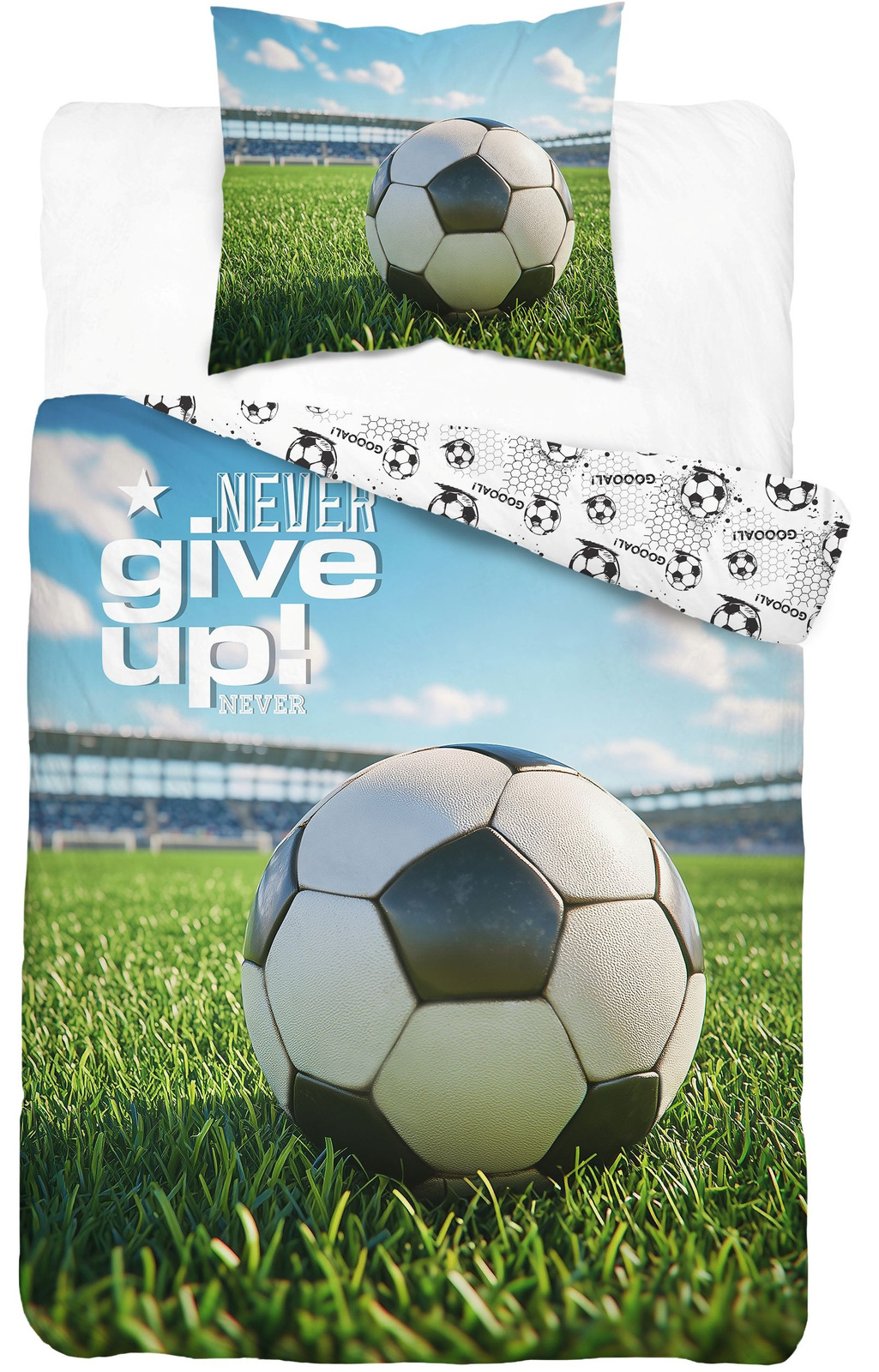 Pościel młodzieżowa 160x200 biała z piłką nożną Never Give Up Dream