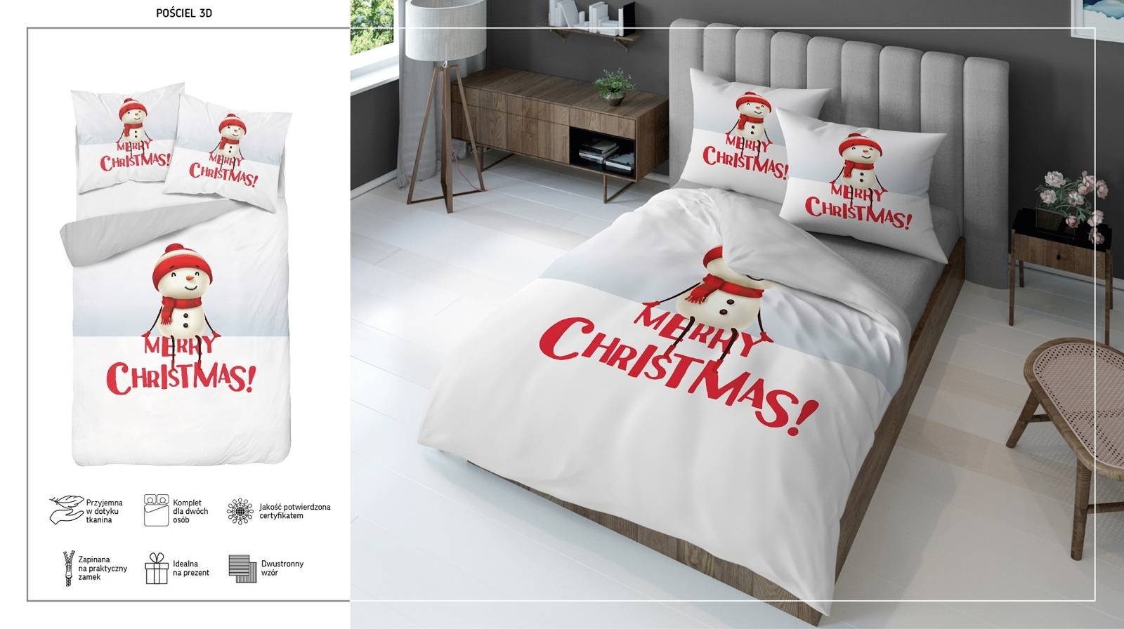 Pościel Świąteczna Święta Bałwanek 160x200 3D Zima