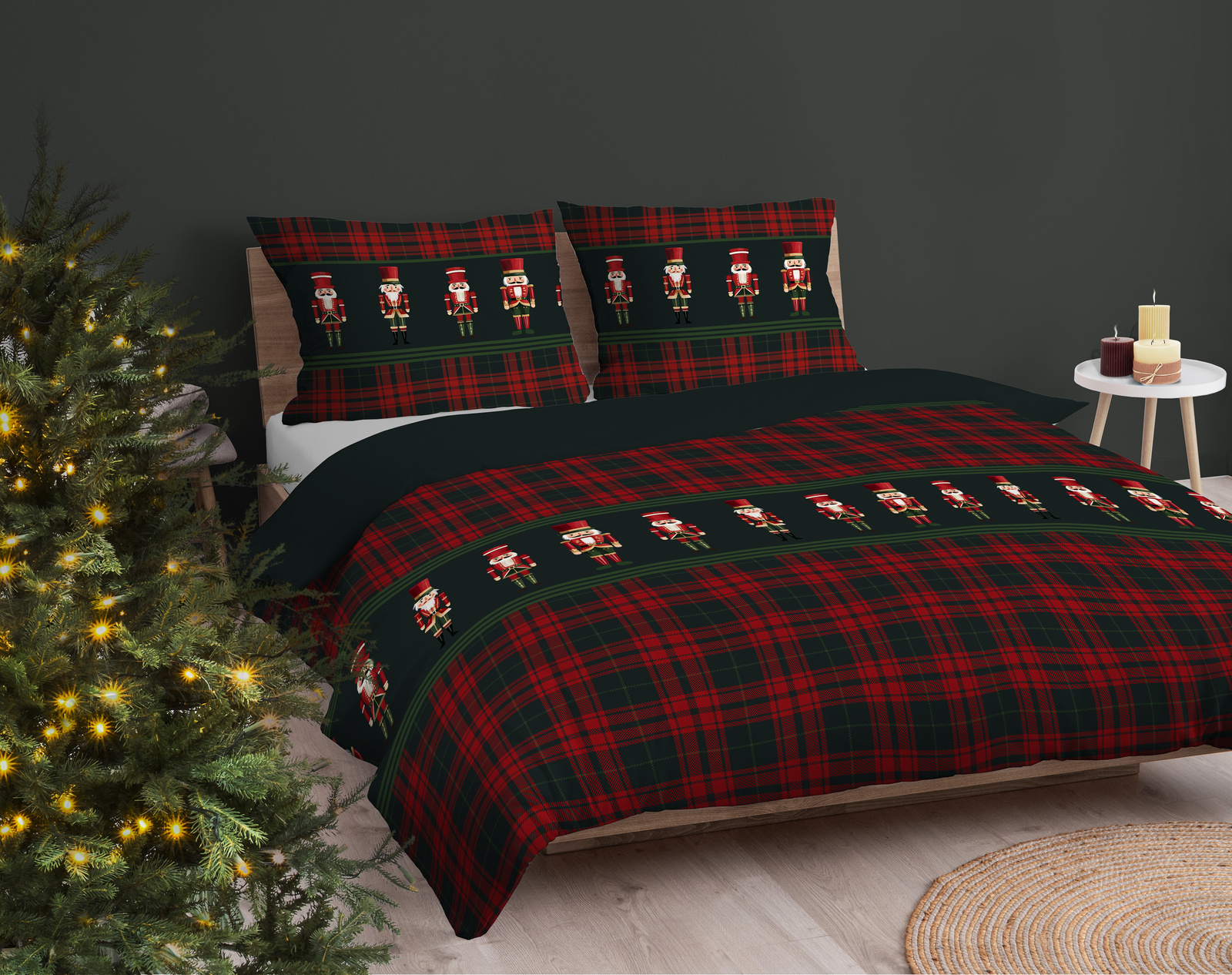 POŚCIEL ŚWIĄTECZNA ŚWIĘTA DZIADEK ŻOŁNIERZYK CZERWONA KRATA BAWEŁNA 160X200