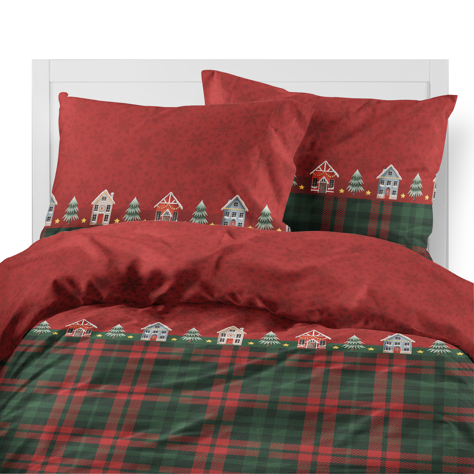 POŚCIEL ŚWIĄTECZNA ŚWIĘTA ZIELONA DOMEK KRATA BAWEŁNA FLANELA 160X200