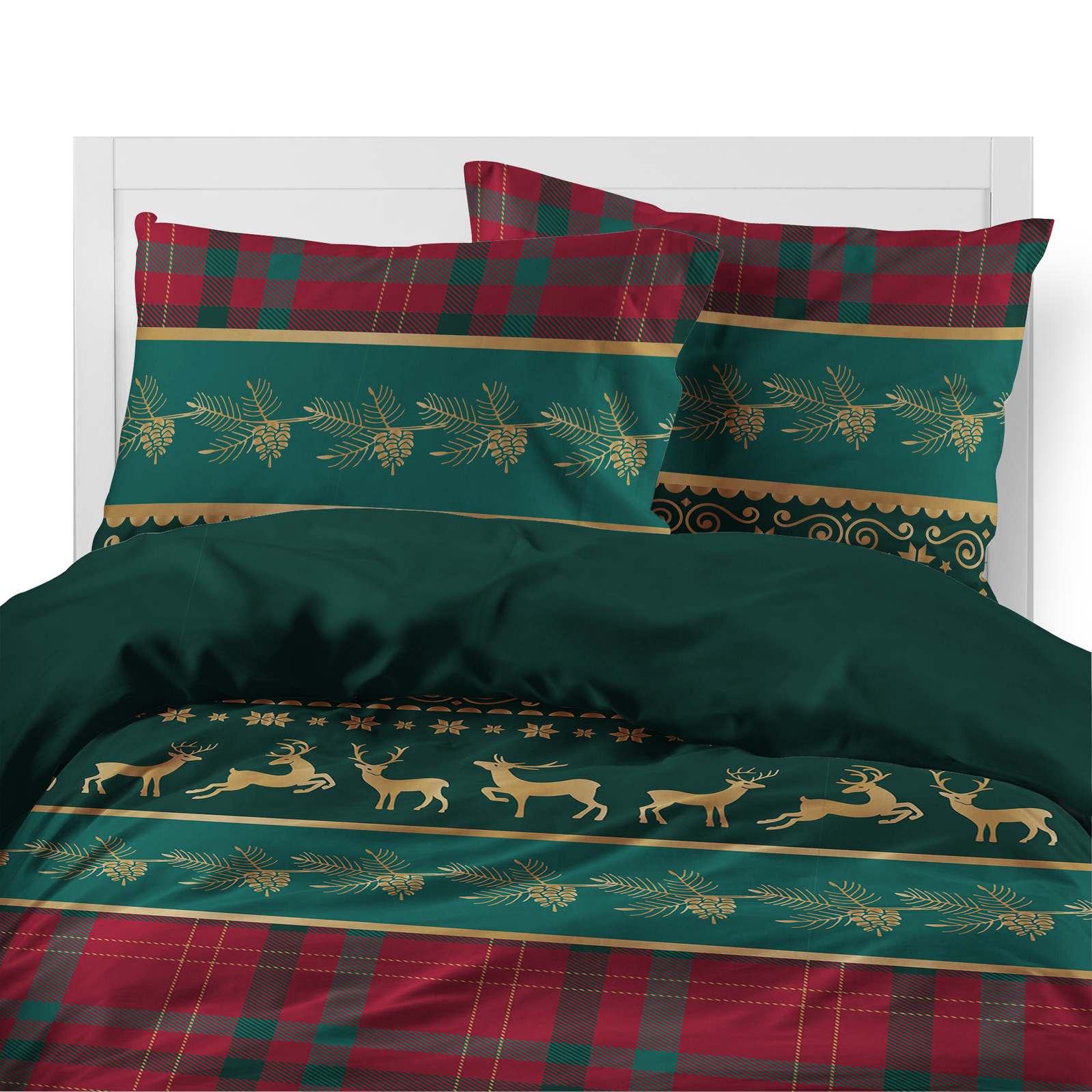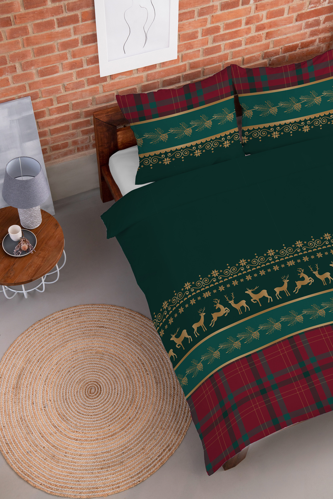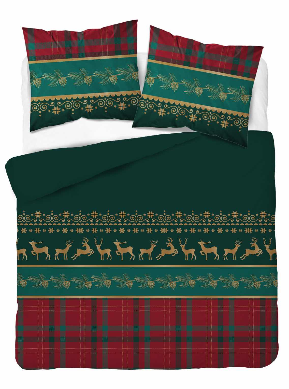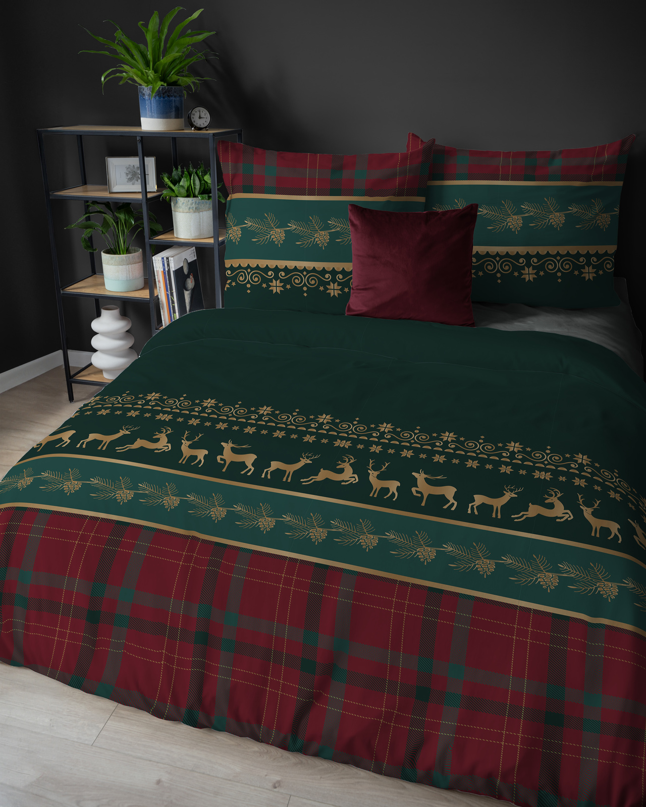 POŚCIEL ŚWIĘTA ŚWIĄTECZNA FLANELA RENIFERY KRATKA FLANELOWA ZIELONA 220X200