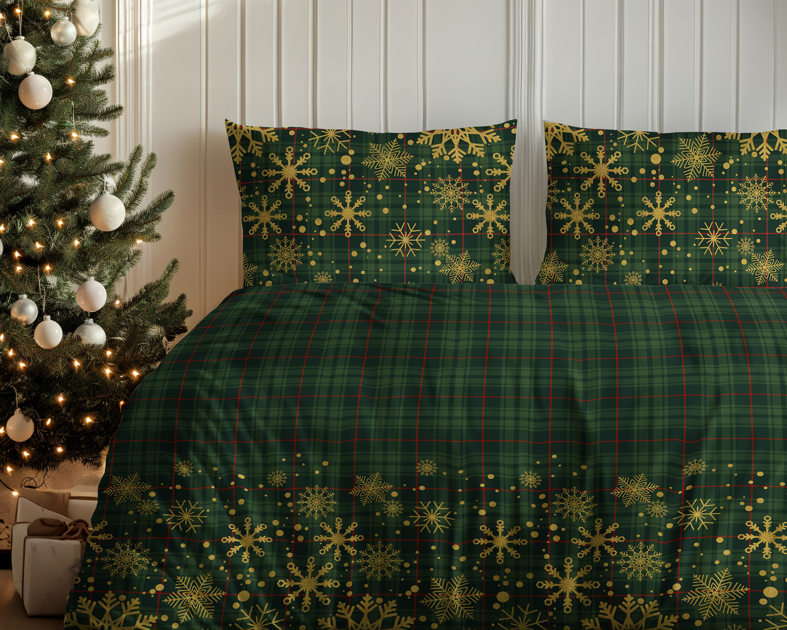 POŚCIEL ŚWIĘTA ŚWIĄTECZNA KRATKA BAWEŁNA SATYNOWA 220X200 GWIAZDKA