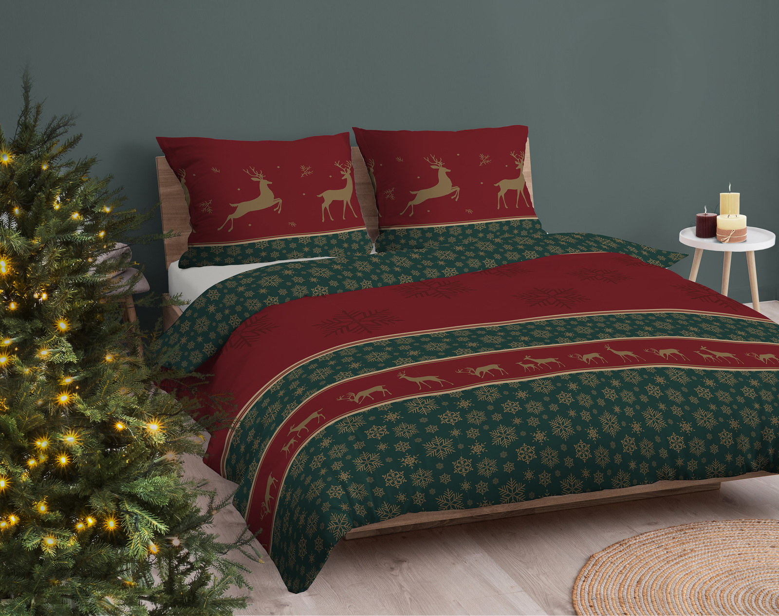 ŚWIĘTA ŚWIĄTECZNA POŚCIEL RENIFERY CZERWONA BAWEŁNA 220X200