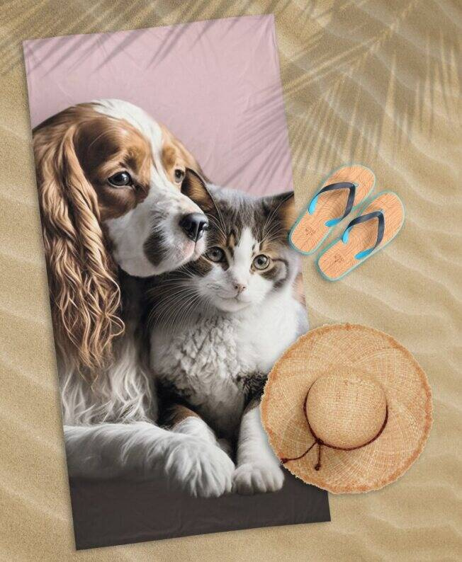 PIES PIESEK KOT KOTEK RĘCZNIK KĄPIELOWY PLAŻOWY DZIECIĘCY MŁODZIEŻOWY BASEN