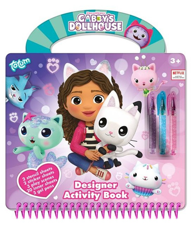 Czas zaprojektować najpiękniejsze stroje i stylizacje - z uroczą Gabi ta zabawa stanie się jeszcze ciekawsza! Szkicownik ma 3 piękne strony z tłem, 2 szablony do rysowania, 3 żelowe długopisy, arkusze z naklejkami - to wszystko sprawia, że można z łatwością narysować wspaniałe ilustracje z ulubionymi postaciami z bajki Koci Domek Gabi. Gabi i Kiciuś Panduś już czekają na wspólne kreatywne zajęcie.