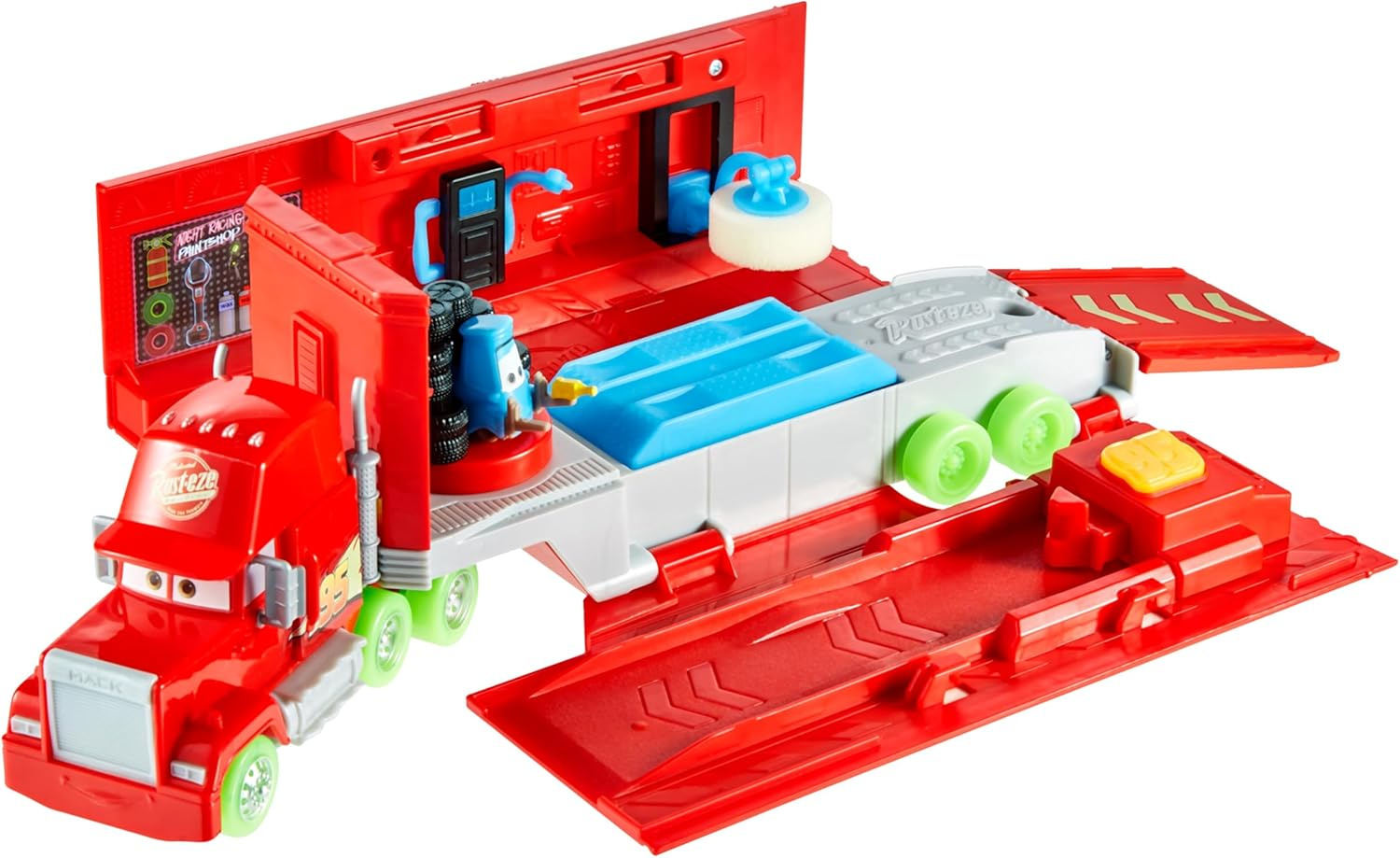 Maniek Ciężarówka z serii Cars Auta to wyjątkowa zabawka stworzona z myślą o małych fanach wyścigów i przygód. Po rozłożeniu naczepy ciężarówka zamienia się w pełnoprawne centrum serwisowe dla autek (sprzedawane oddzielnie). W środku czeka Guido, gotowy do sprawdzenia opon i przygotowania pojazdów do kolejnego wyścigu!