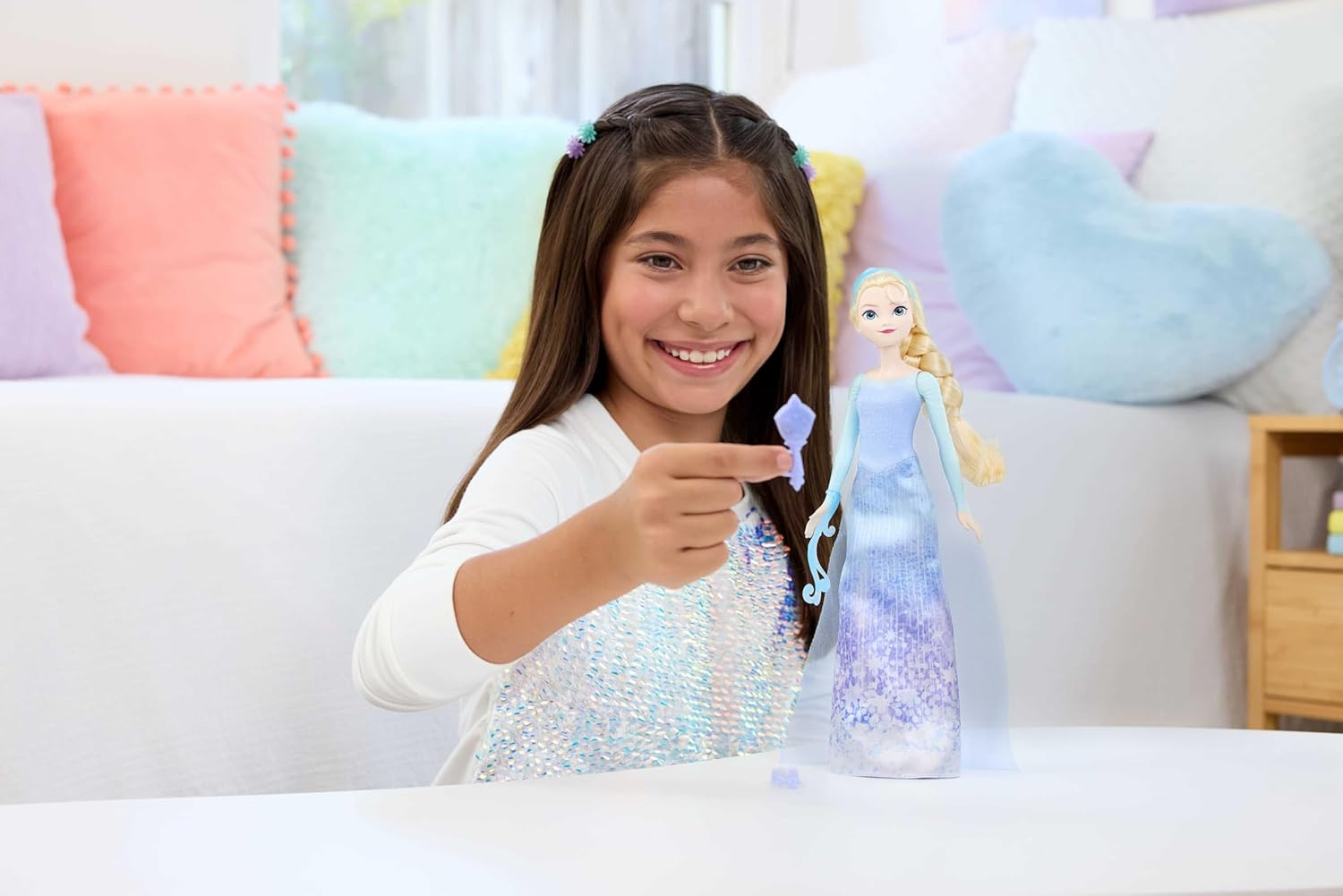 Piękna lalka Elsa z długimi, miękkimi włosami.