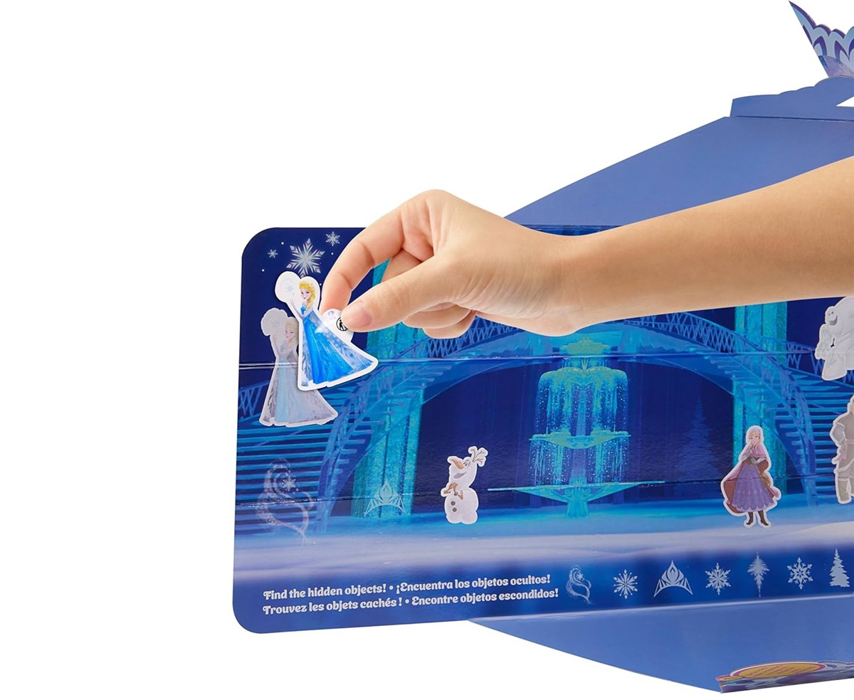 Dzieci mogą udekorować scenę naklejkami i używać jej jako tła do zabawy – tworząc własne historie z Arendelle.