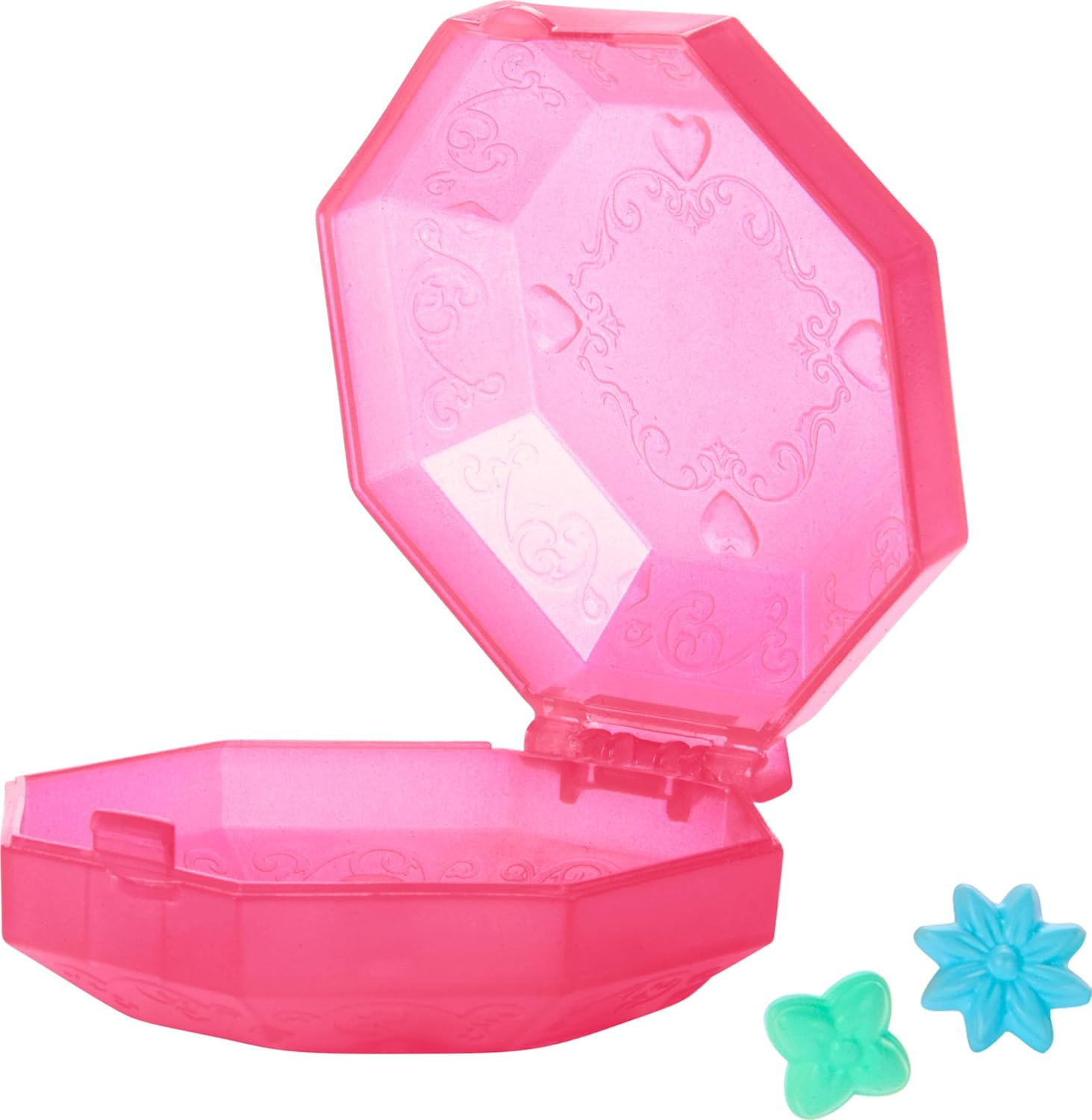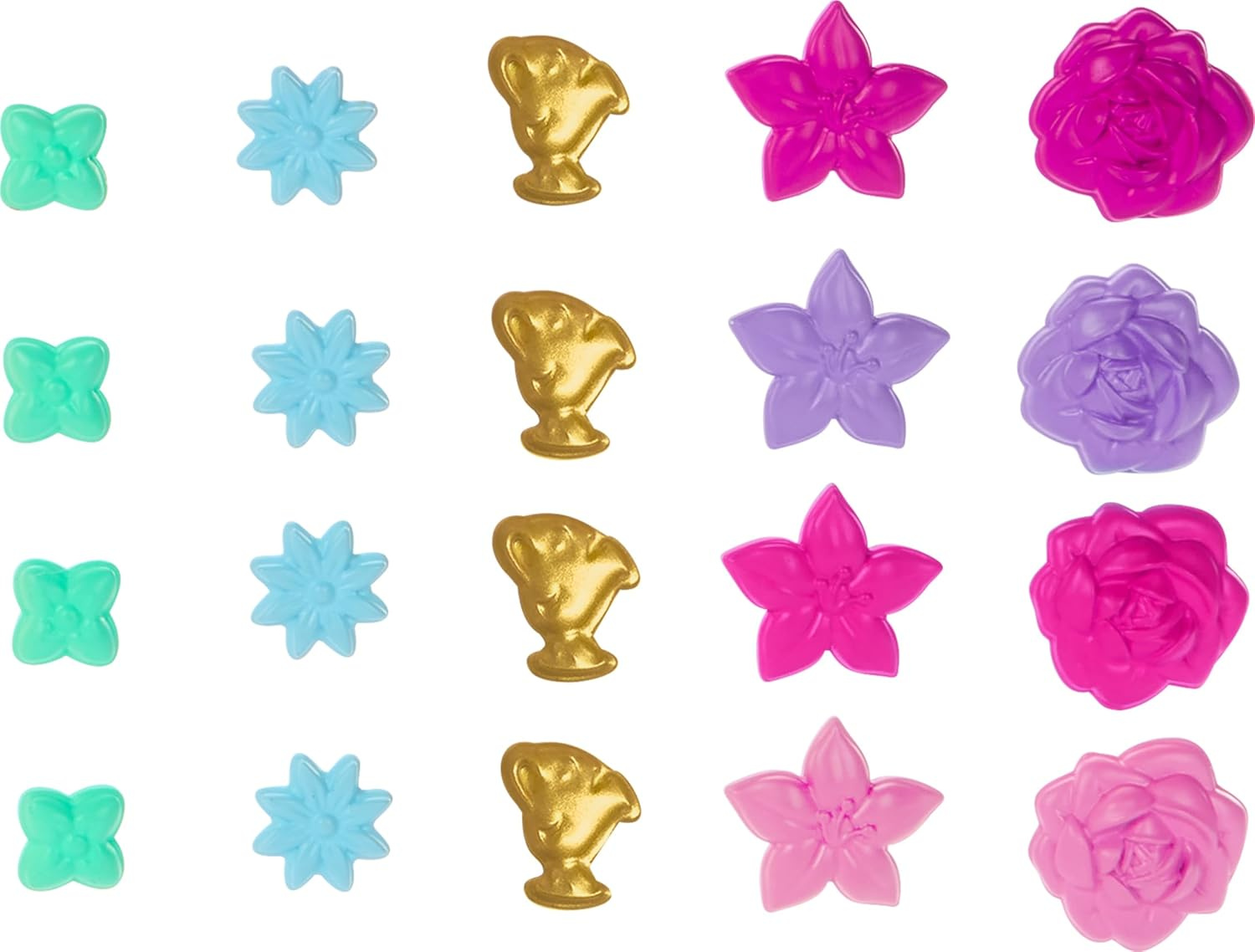 Dzieci pokochają strojenie Belli na przyjęcie w ogrodzie dzięki uroczym przyczepianym ozdobom do tworzenia niepowtarzalnych stylizacji. Zabawka dla dzieci lalka modowa Bella do ustawiania w różnych pozach ma 20 barwnych przypinek w formie kwiatuszków, którymi fani Disneya mogą ozdobić jej plastikową spódniczkę. Po skończonej zabawie wszystkie ozdoby można schować do dołączonego pojemnika. Lalka ma też spódniczkę z materiału, tiarę i baskinkę, które urozmaicają zabawę modą. Fani będą zachwyceni możliwością odtwarzania ulubionych scen z filmu „Piękna i Bestia” Disneya lub wymyślania własnych opowieści.